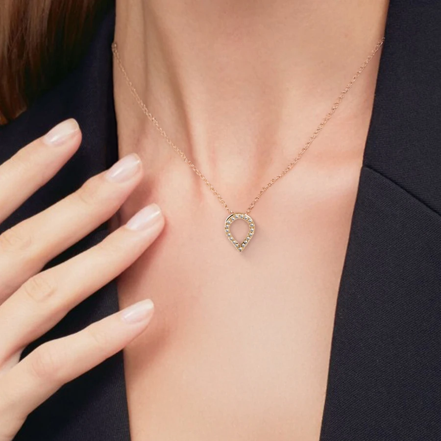 שרשרת זהב עם תליון פווה 0.10 קראט יהלומים איכות SI, G-H בצורת טיפה הפוכה