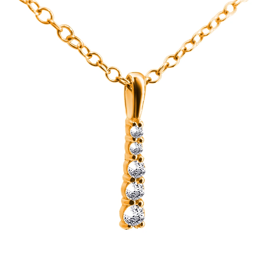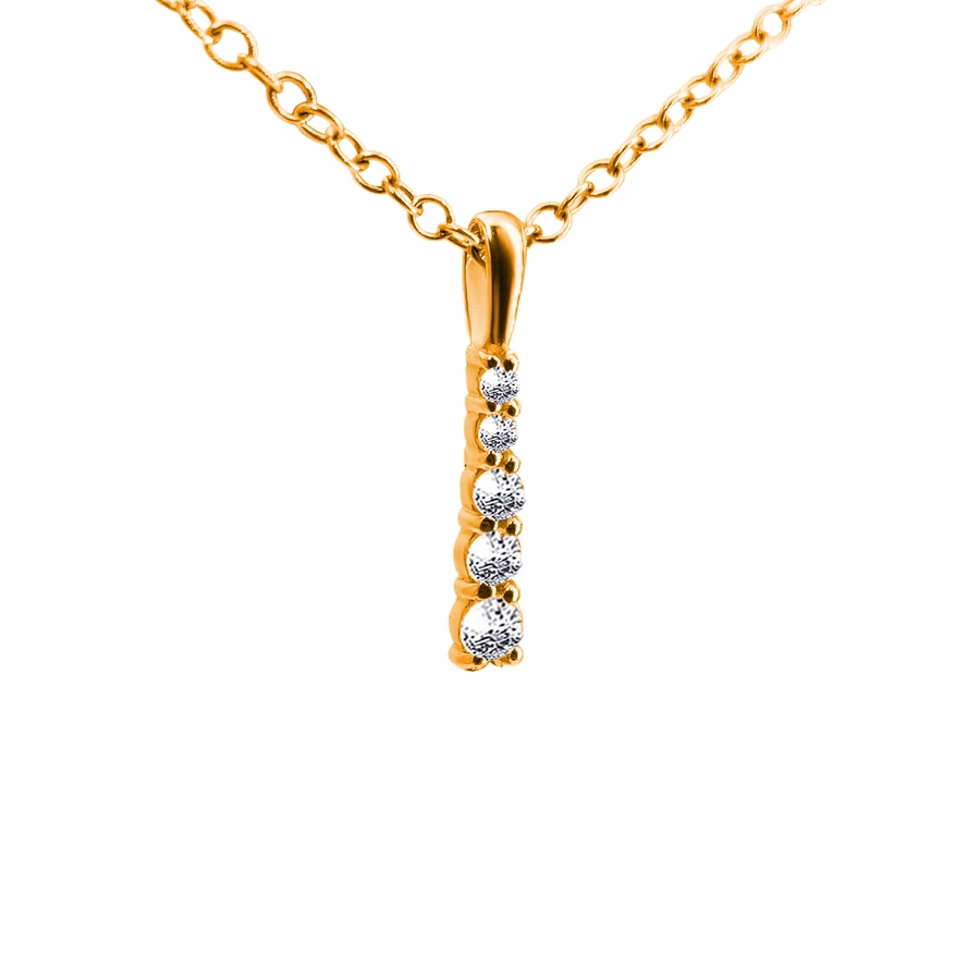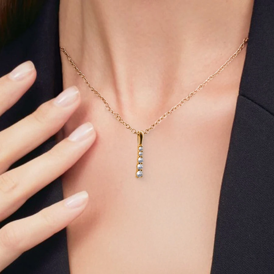 שרשרת זהב עם תליון בצורת קו ישר של פווה יהלומים בגודל הולך וגדל, במשקל 0.20 קראט, באיכות SI, G-H