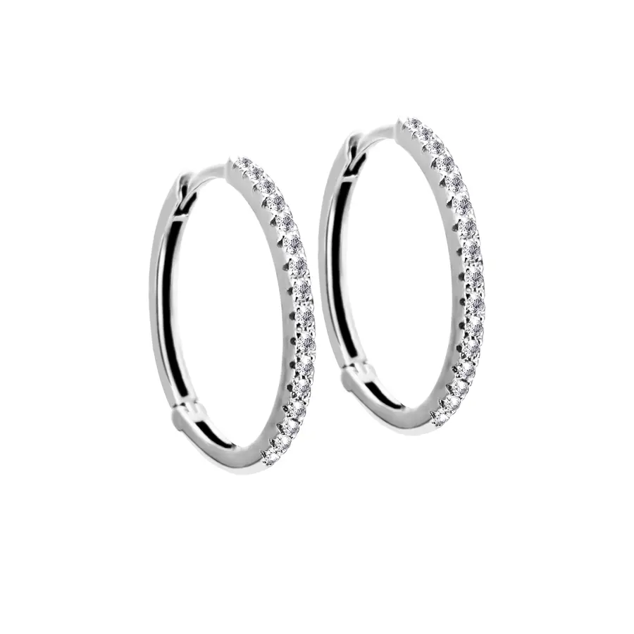 עגילי חישוק בקוטר 19 מ"מ משובצים 32 יהלומי מעבדה בסך כולל של 0.16 קראט בעיצוב מעודן שמחמיא בכל מצב ובכל שעה ביום.