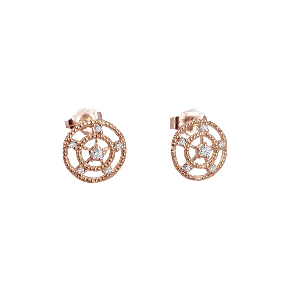 עגילים בקוטר 10 מ"מ מעוצבים בהשראת סמלים של הובלה פנימית וכיוון מדויק — כמו כוכב שמאיר דרך בלילה או הגה שמוביל במסע על פני הים. הברק שמפוזר סביב המרכז יוצר תחושה של תנועה מעגלית והרמונית, כזו שמזכירה קצב טבעי ומרגיע.