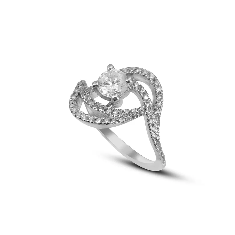 טבעת מלכותית עם יהלום מרכזי גדול ו־64 יהלומים שעוטפים אותו כמו פרח יוקרתי. סה״כ 0.82 קראט של יהלומי מעבדה.