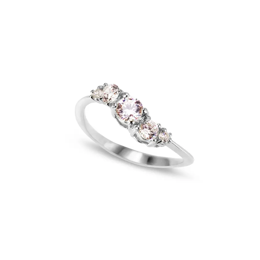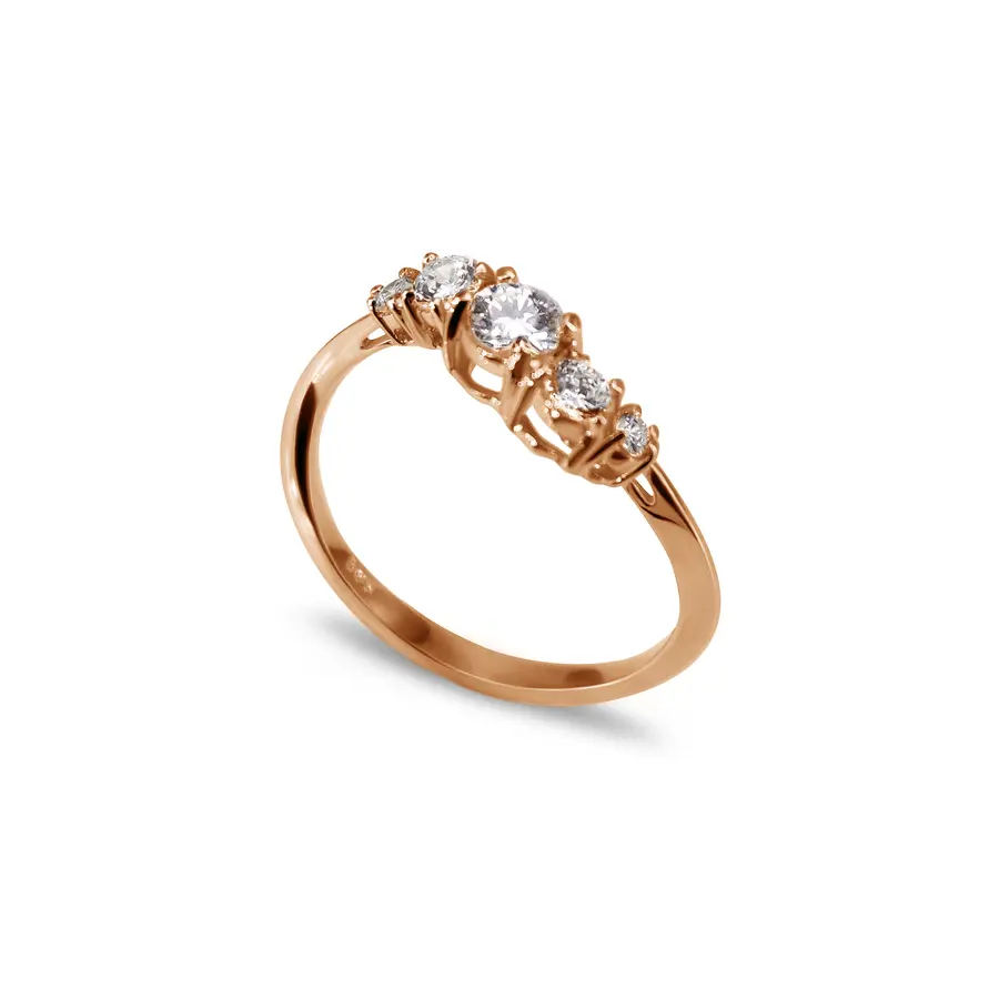 טבעת גל עדינה וקלאסית עם שלושה יהלומי מעבדה גדולים בסך של 0.66 קראט ועיטורים שיוצרים משחק אור מיוחד.