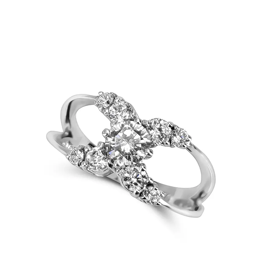 טבעת Adria — מלכותית, ייחודית, עם יהלום מרכזי ו־8 יהלומים נוספים בגדלים שונים. סה"כ 0.80 קראט של יהלומי מעבדה.