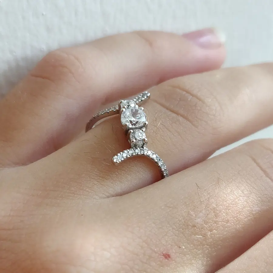 Samantha בנויה כמו תנועה: יהלום מרכזי, שני יהלומים בינוניים שמשלימים אותו, וגל של 12 יהלומים קטנים בכל צד שיוצר עומק וברק.