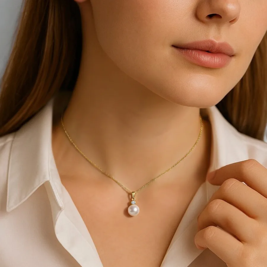 שרשרת זהב עם יהלום ופנינה Marina