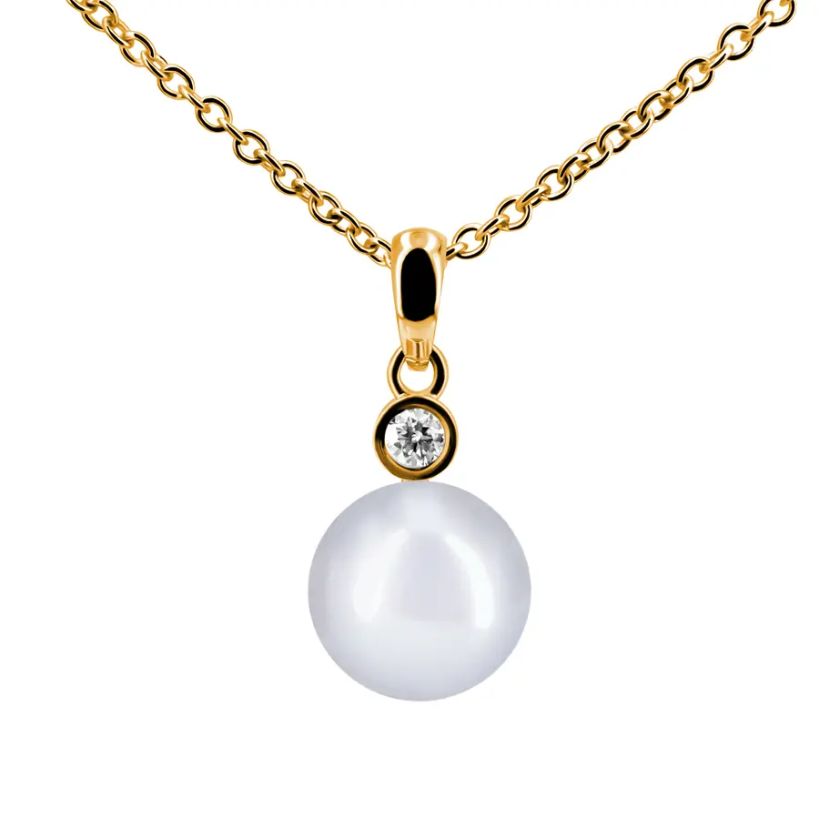 ✨ שרשרת עדינה עם יהלום מעבדה 0.07 קראט במרכז ופנינה אלגנטית שתלויה מתחתיו.
