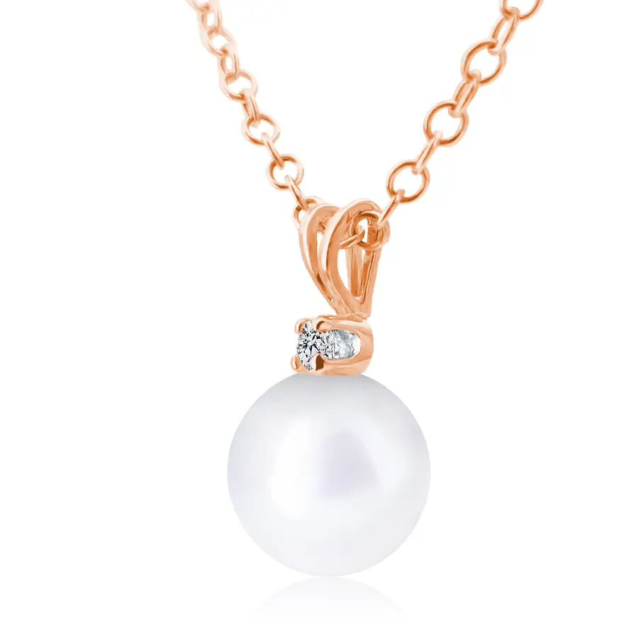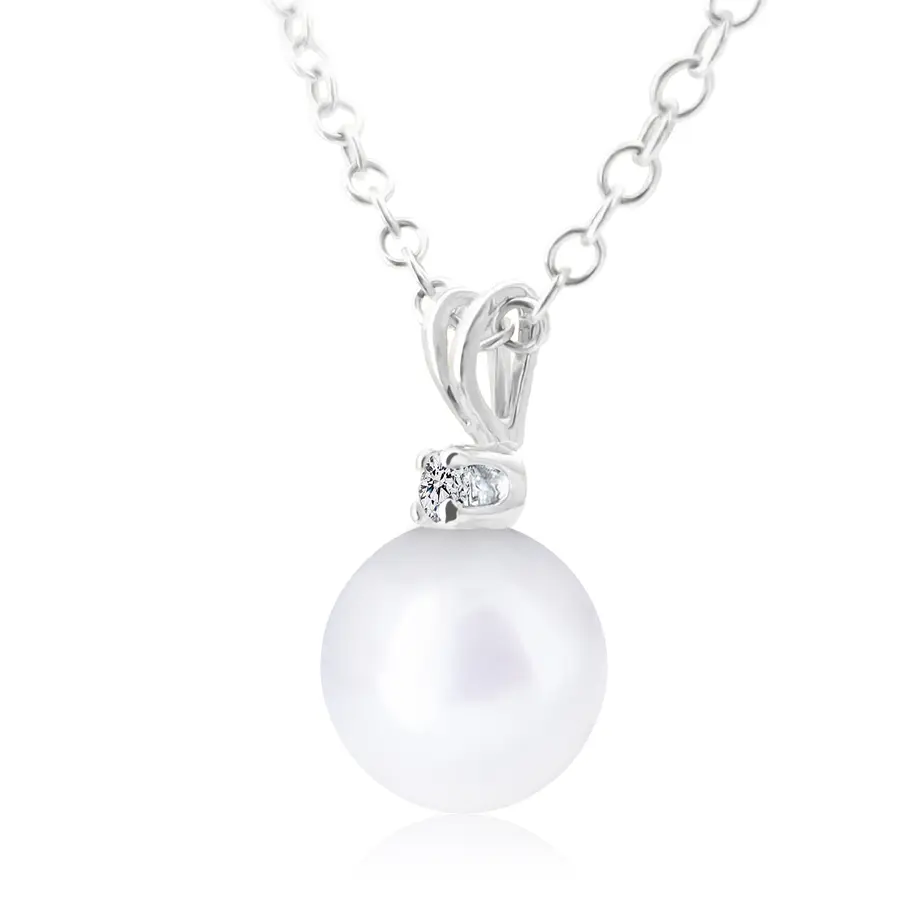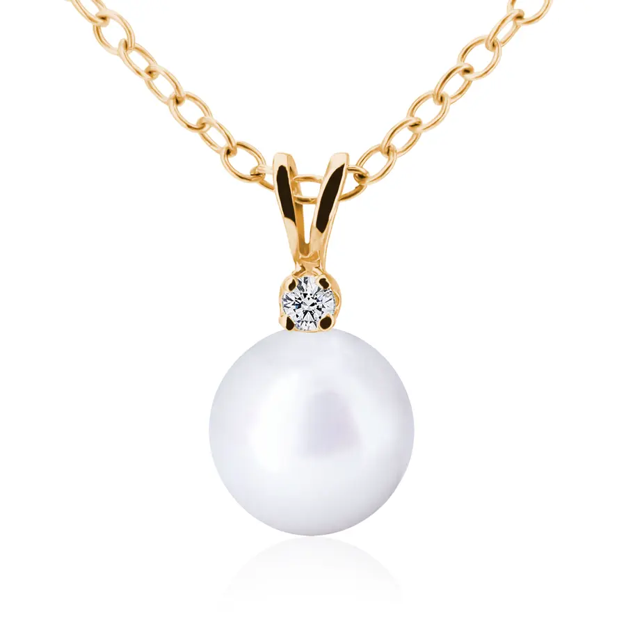 ✨ שרשרת יוקרתית עם יהלום מעבדה 0.05 קראט משובץ במסגרת אלגנטית ופנינה תלויה.