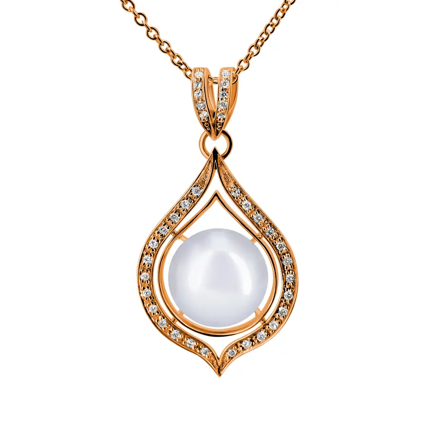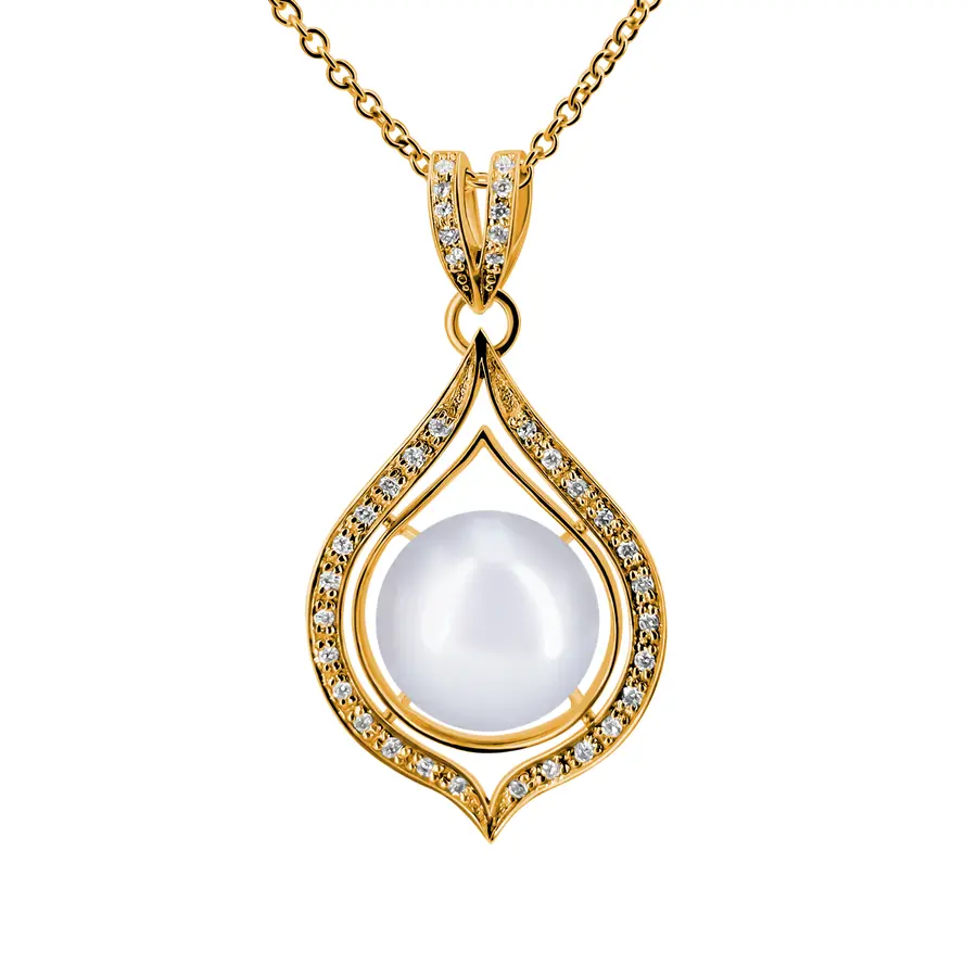 ✨ פנינה טבעית השוכנת בתוך מעטפת עלה יוקרתית משובץ 36 יהלומי מעבדה בגדלים שונים (סה״כ 0.18 קראט).