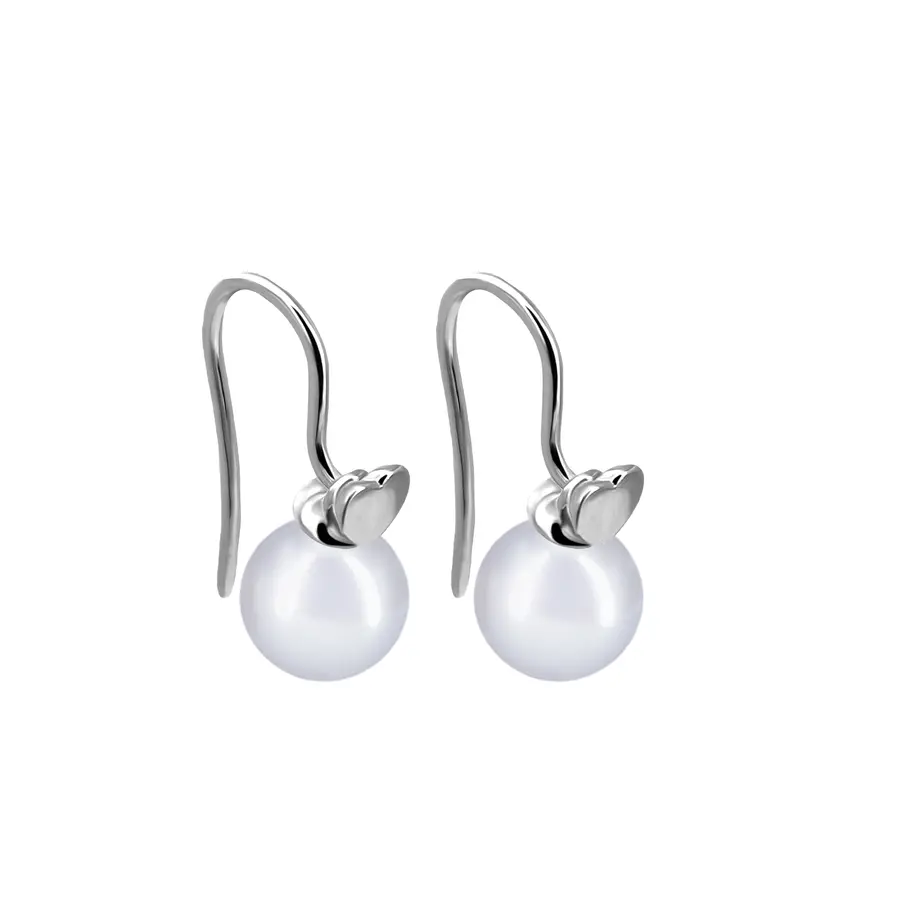 עגילים נוחים לשימוש יום-יומי ולאירועים מיוחדים עם סגירת Shepherd hook דקיק שעליו לב עדין היורד לקראת פנינה מבריקה.