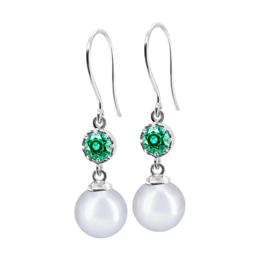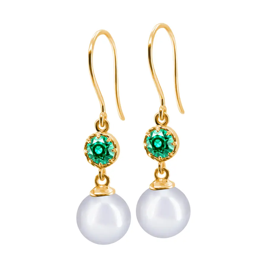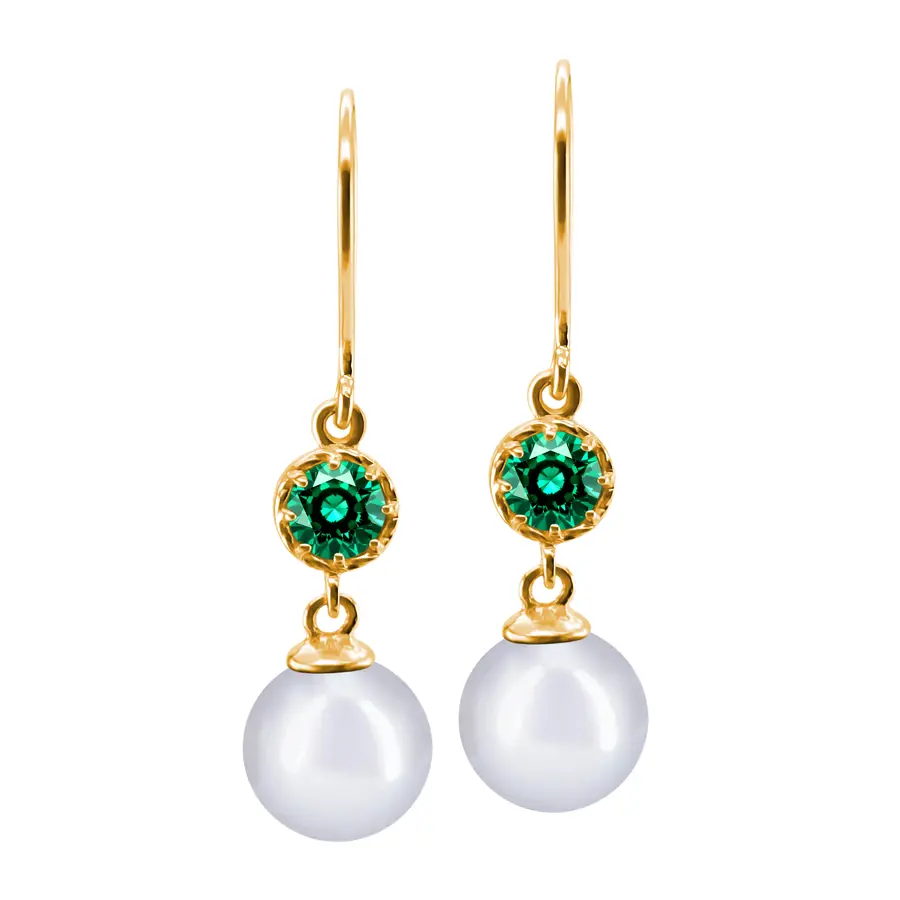 ✨עגיל מוזהב עם אבן אמרלד 0.25 קראט ופנינה — עמוק ועוצמתי.