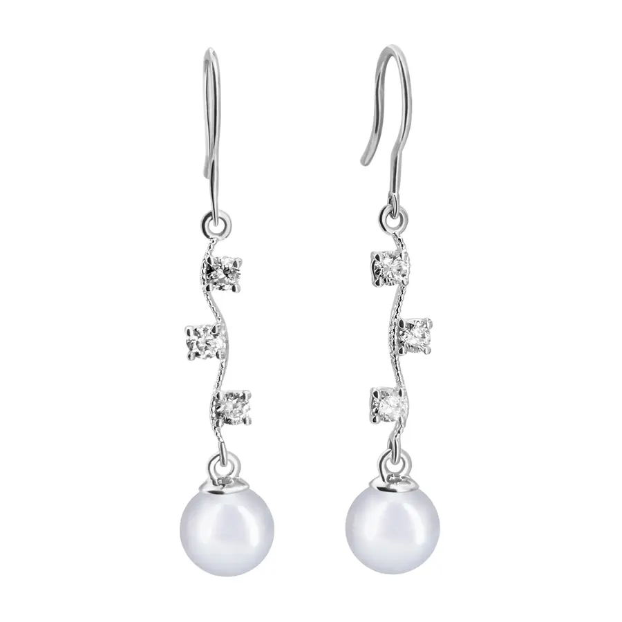✨ עגילים תלויים- כל עגיל משובץ 3 יהלומי מעבדה ופנינה עדינה.
