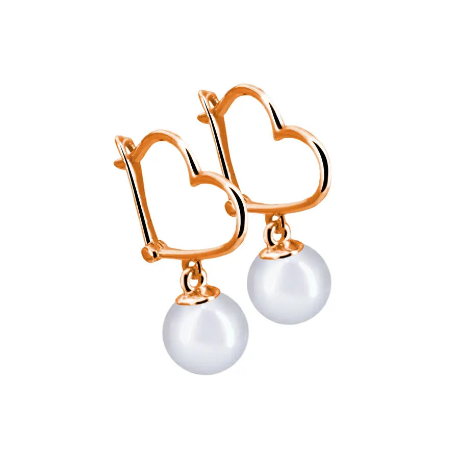 ✨ עגיל לב מוזהב עם פנינה — רומנטיקה מודרנית.