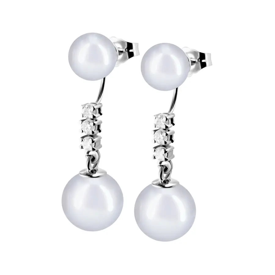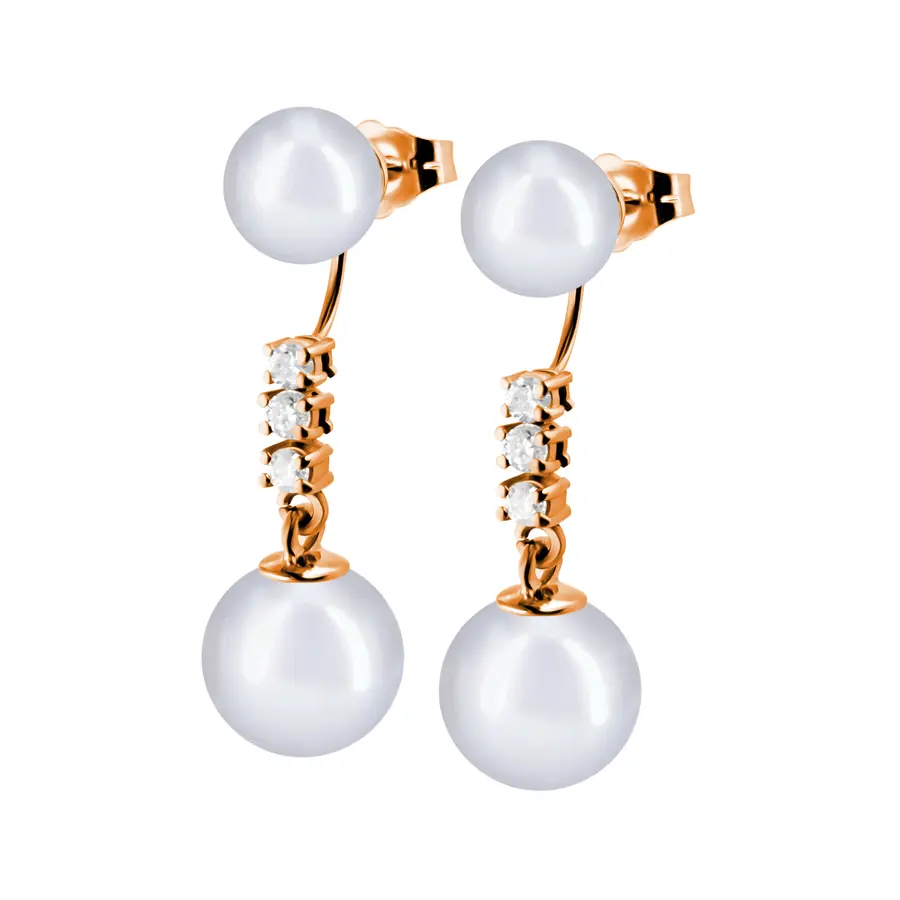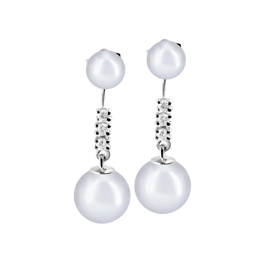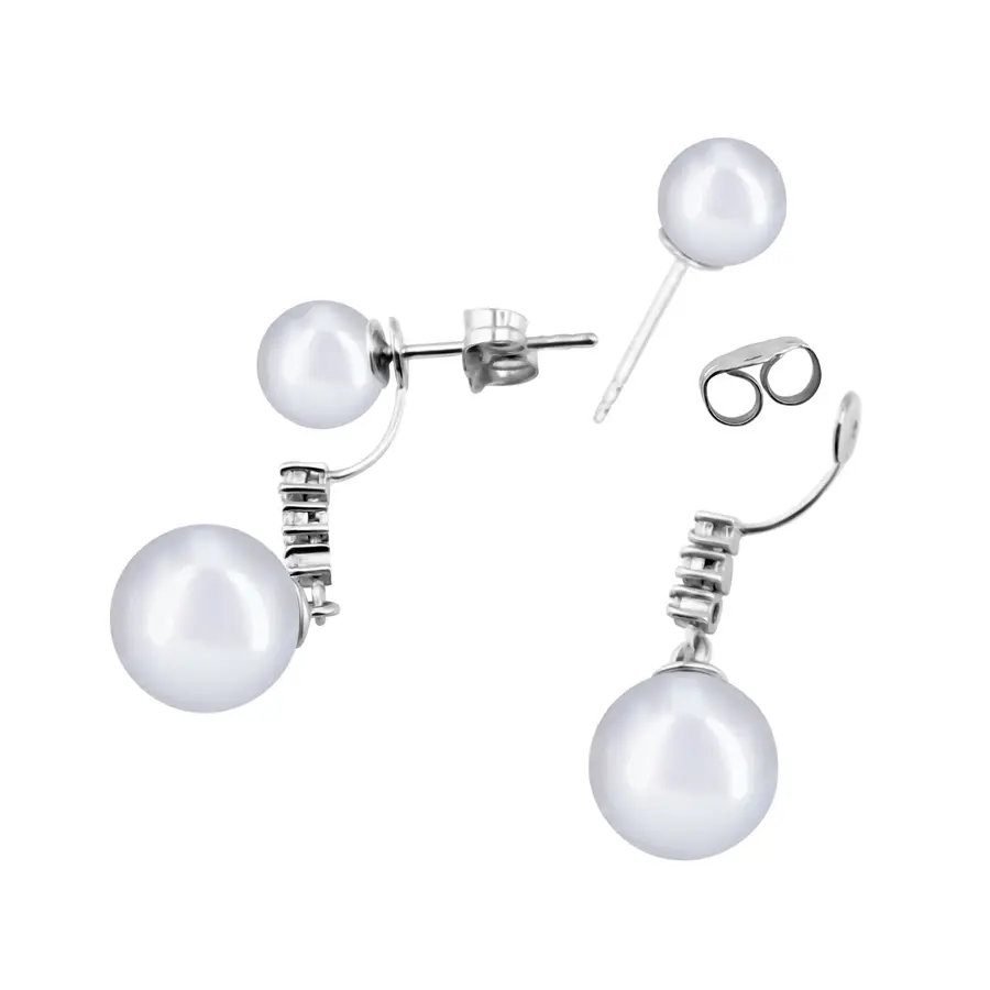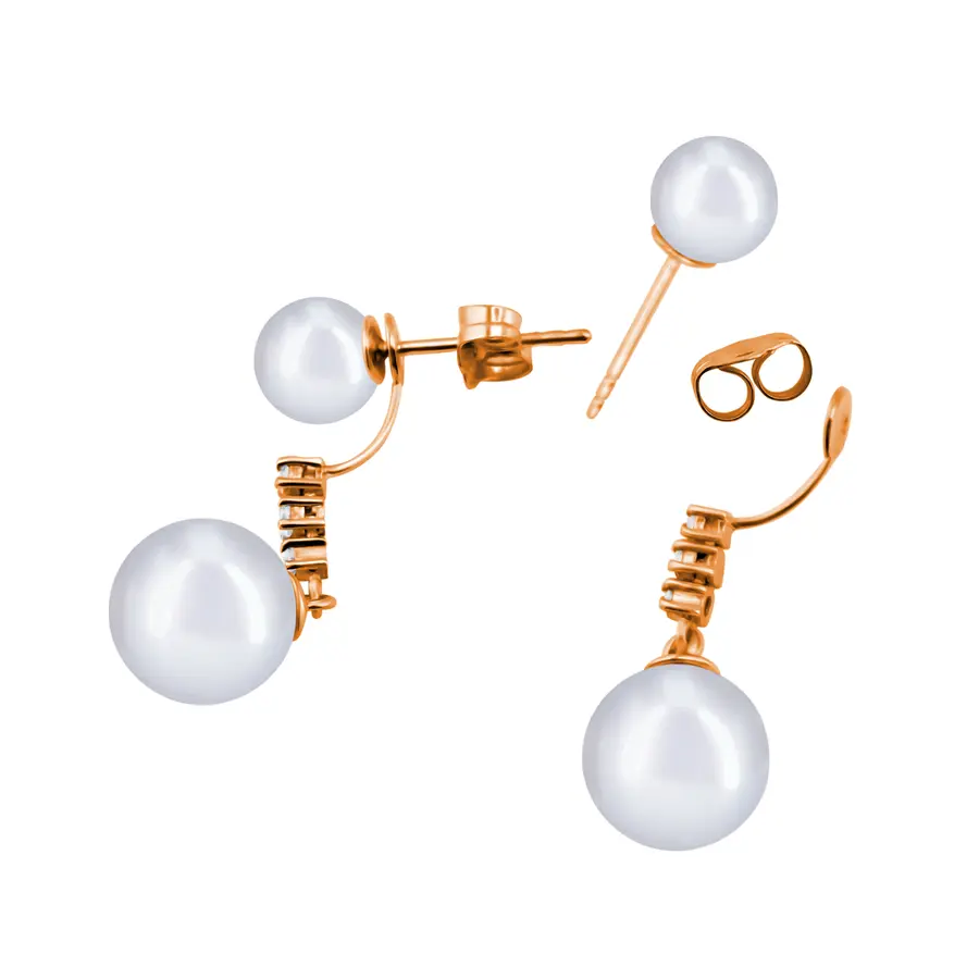 פנינה על האוזן, שלושה יהלומי מעבדה 0.03 קראט כל אחד ופנינה למטה – אלגנטי ומדויק.