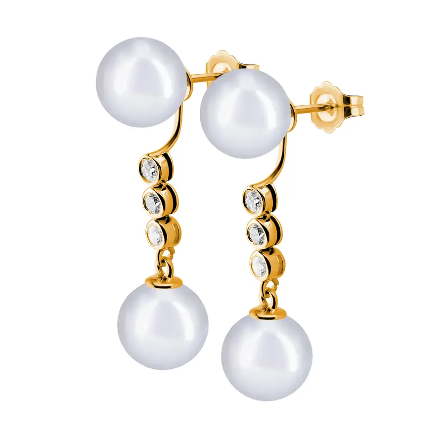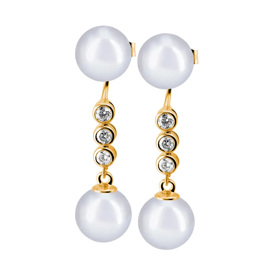 עגיל מפואר ועדין כאחד: פנינה טבעית על האוזן, מתחתיה שלושה יהלומים משובצים בתוך מבנה עגול שמעניק ברק נוסף, ולבסוף פנינה נופלת שמשלימה את העיצוב. עגיל שמעניק נוכחות אלגנטית, אצילית ורכה – מושלם לערב ולאירועים.
