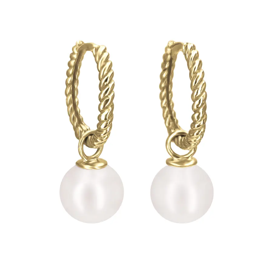 חישוק מוזהב עם טקסטורת חבל ופנינה עגולה.