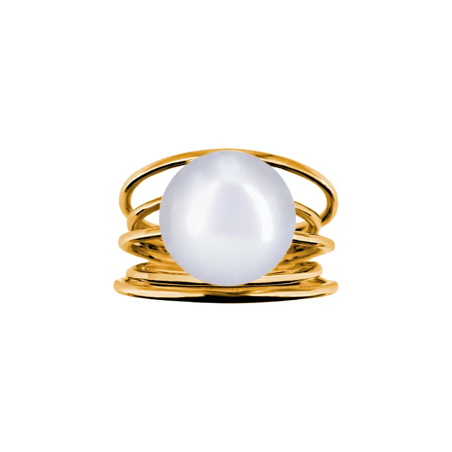 Tess היא טבעת שעושה הצהרה. עיגולי זהב שנושאים פנינה גדולה ומבריקה — שילוב שמדגיש עוצמה לצד נשיות. טבעת מושלמת למי שאוהבת תכשיטים בעלי נוכחות חזקה אך אלגנטית.