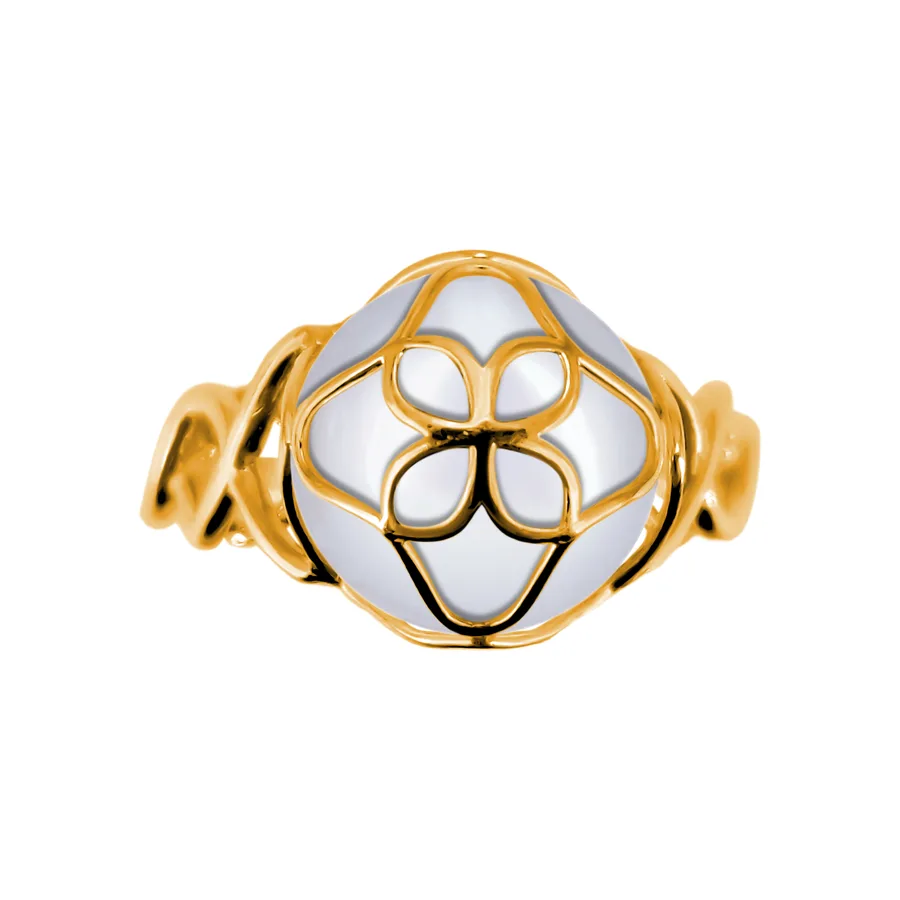 Selina משלבת פנינה רכה בתוך מסגרת מוזהבת בעלת דוגמת תחרה מרהיבה. התוצאה היא טבעת רומנטית, אומנותית ומלאת אופי — יצירת תכשיט ייחודית שמבליטה את הנשיות בעדינות.