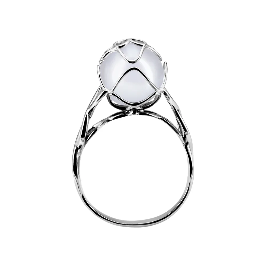 💍 טבעת פנינה בעיצוב תחרה מוזהבת.