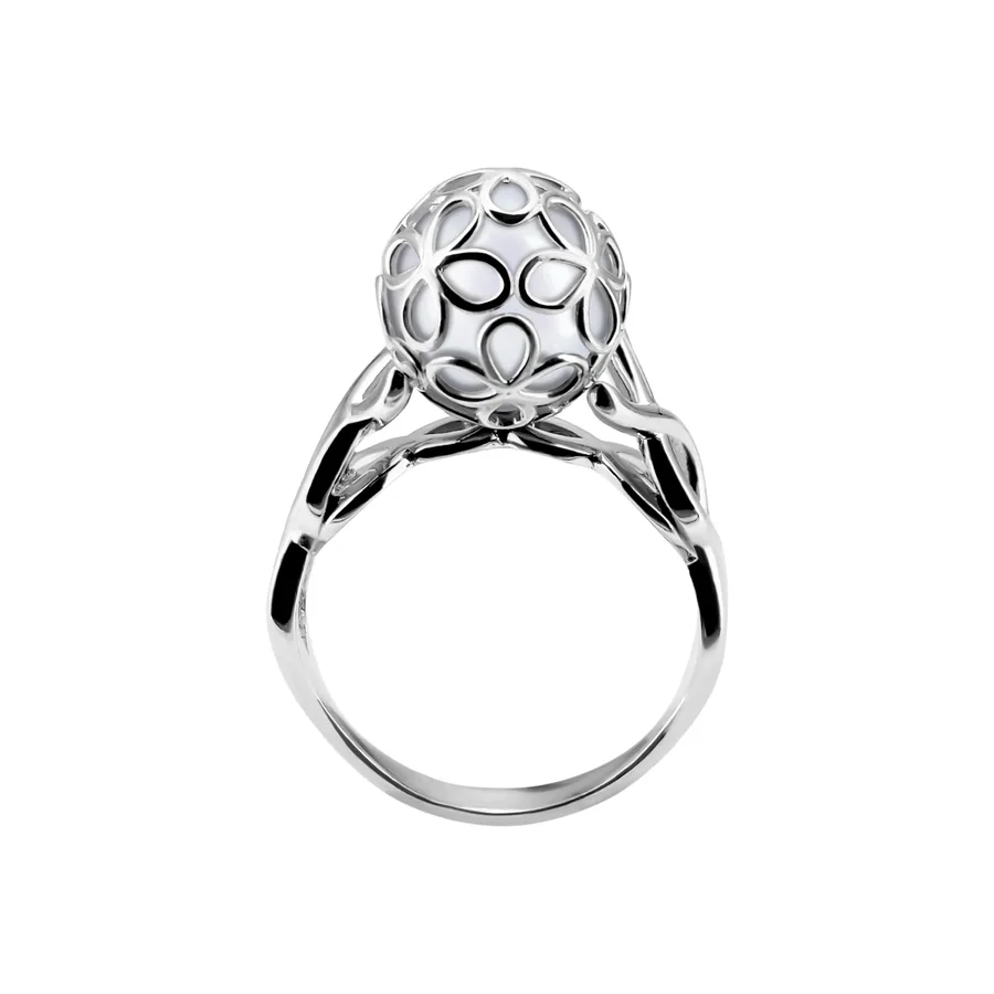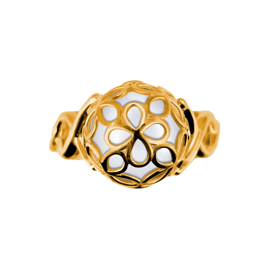 💍 טבעת פנינה בעיצוב פרחוני מוזהב.