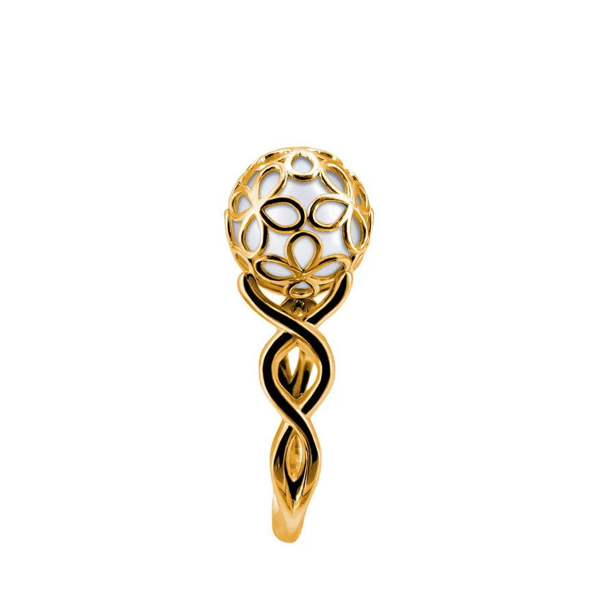 Eden מאופיינת במראה טבעי ורומנטי: פנינה גדולה נחה במרכז עיטור פרחוני עדין מזהב. תכשיט אלגנטי שמעניק תחושת רוך וטבע, מושלם למי שאוהבת עיצובים נשיים ומעודנים.