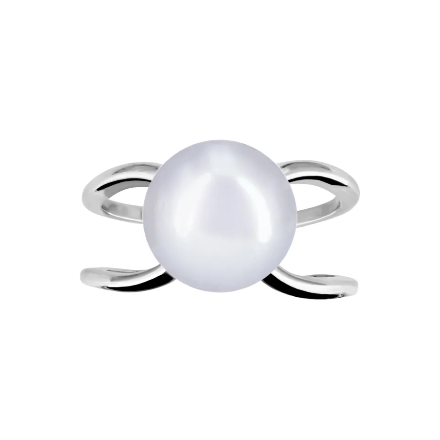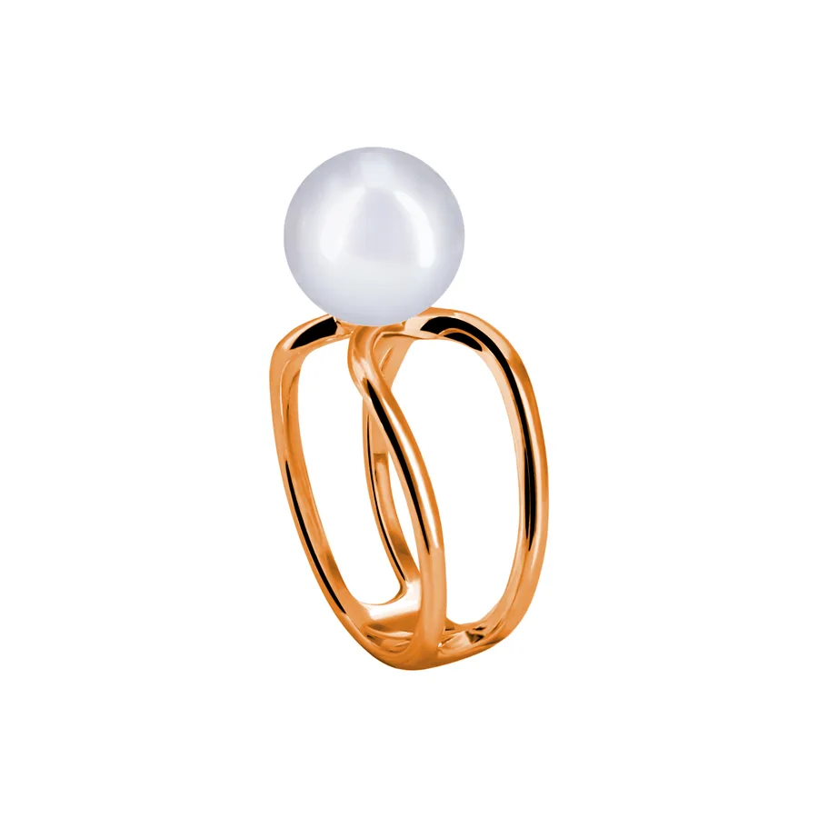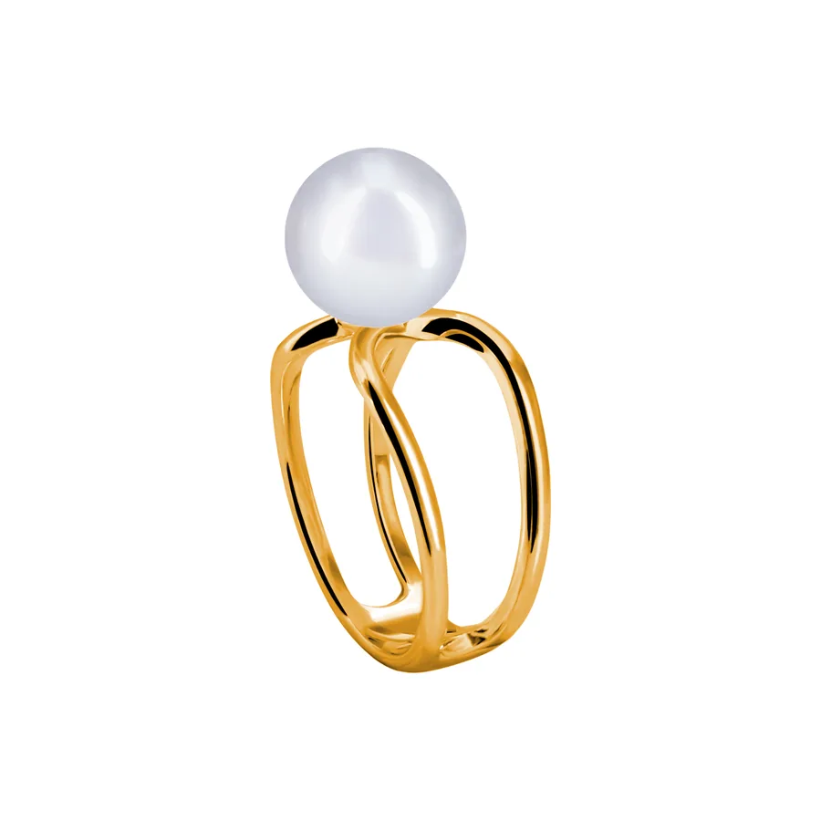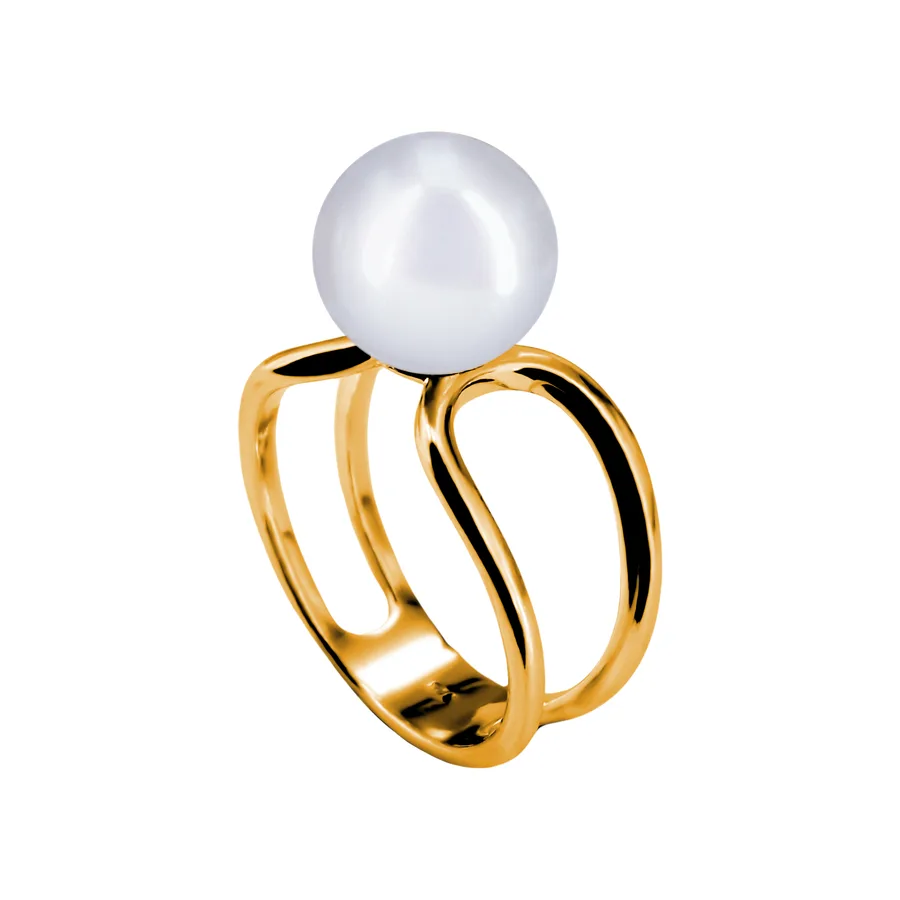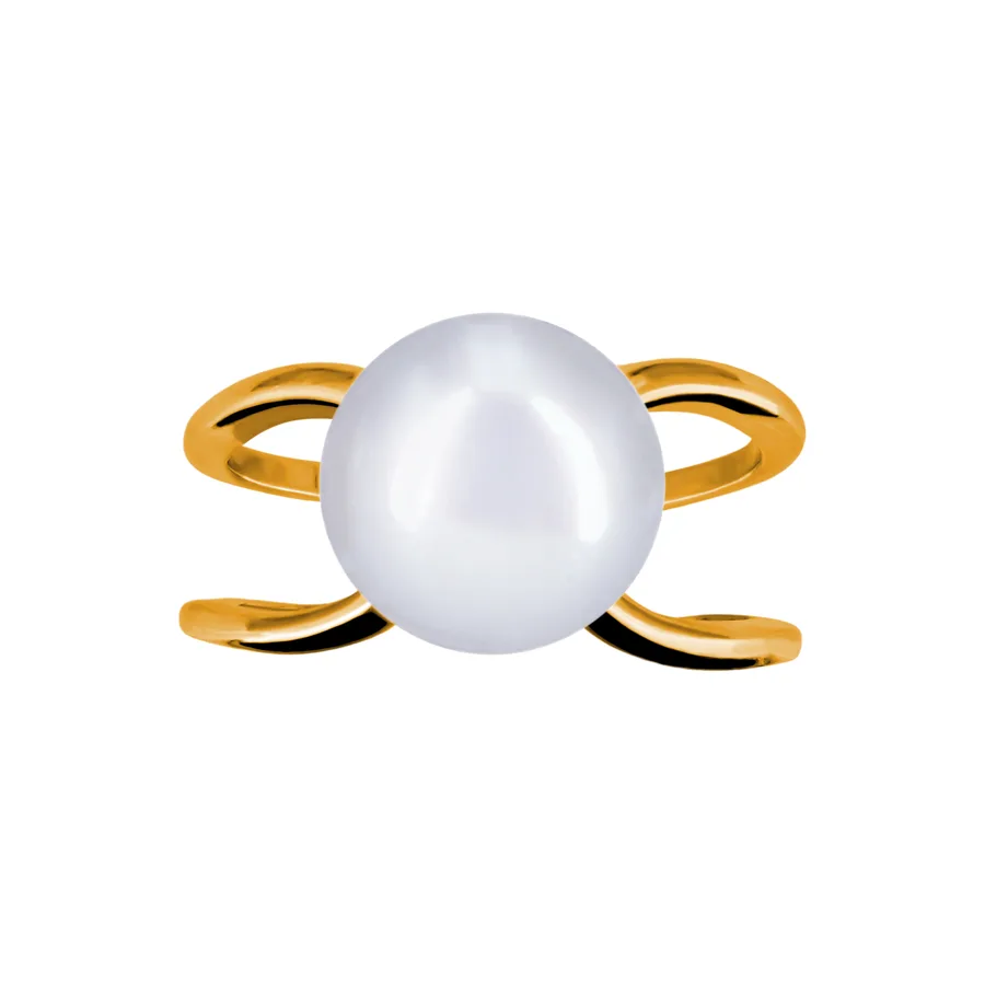 Lois מציגה עיצוב מודרני: שתי רצועות זהב יוצרות מבנה פתוח ומרשים, שמעליו פנינה עגולה. התוצאה — טבעת עדכנית, נשית ובעלת נוכחות מרשימה אך רכה.