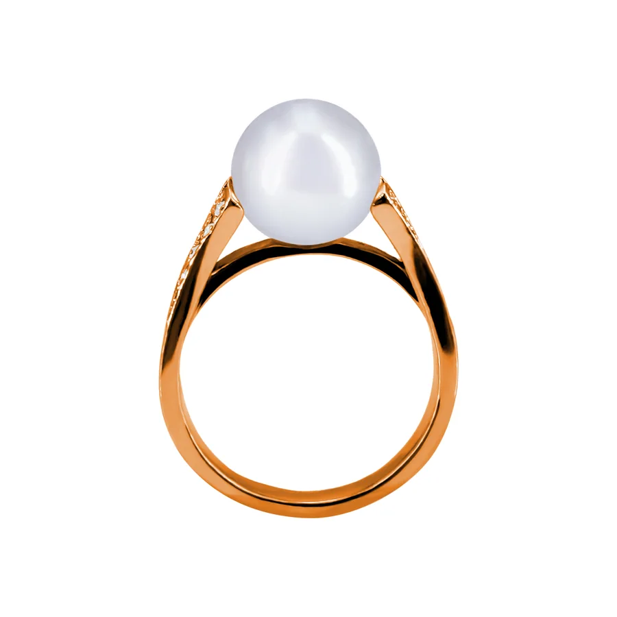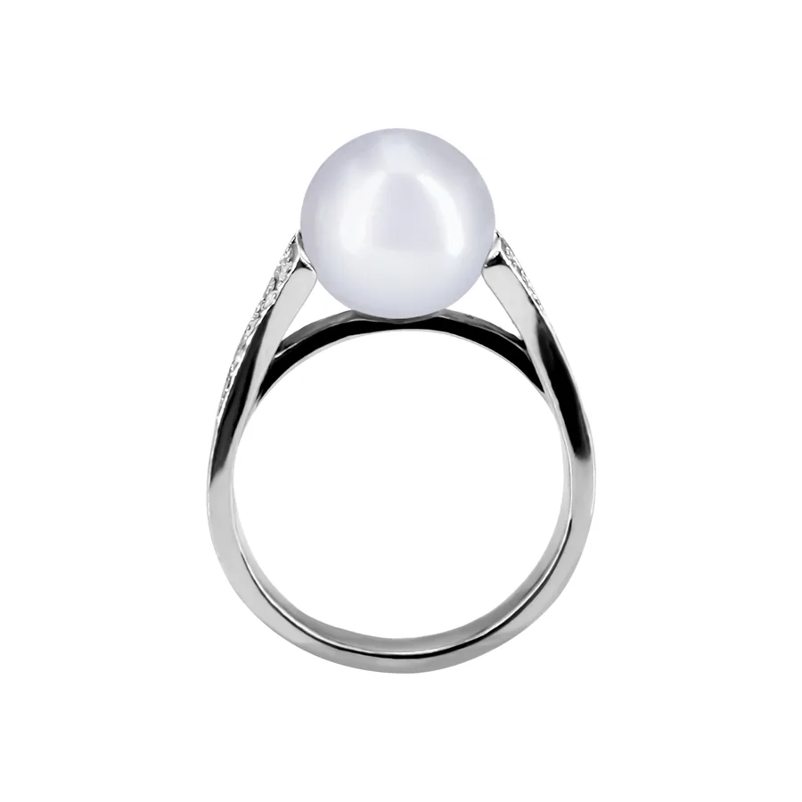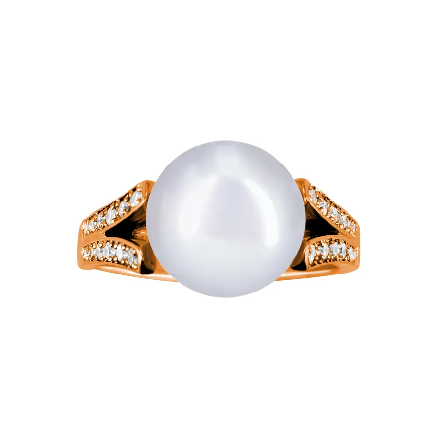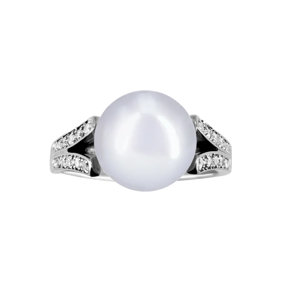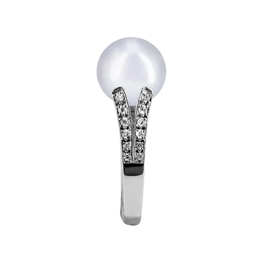 💍 טבעת פנינה קלאסית עם צדדים משובצי יהלומי מעבדה ב-2 גדלים בסך כולל של 0.15 קראט.