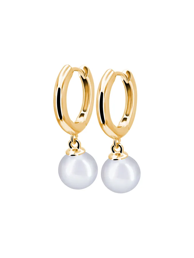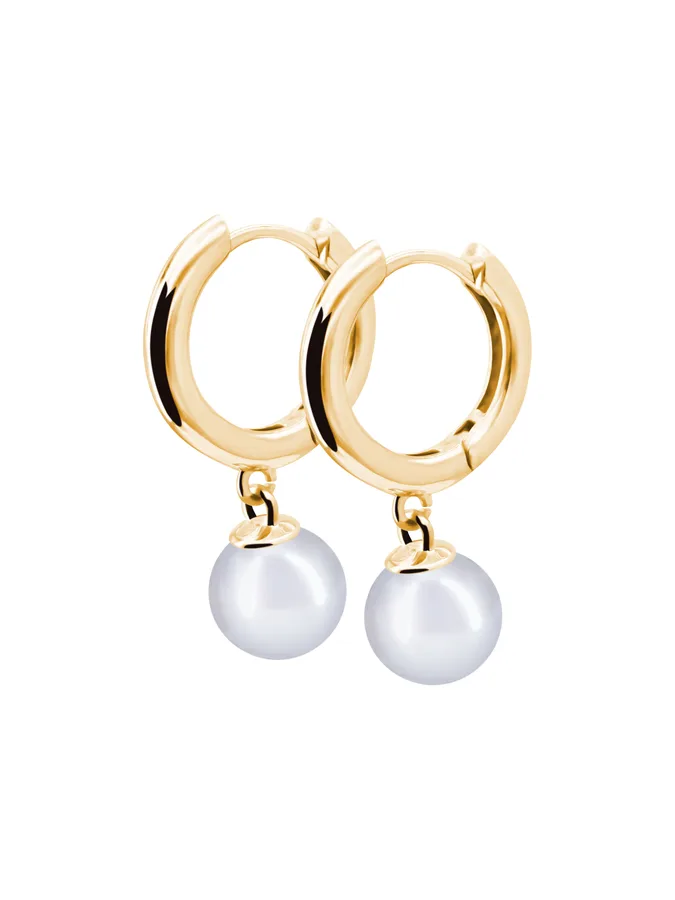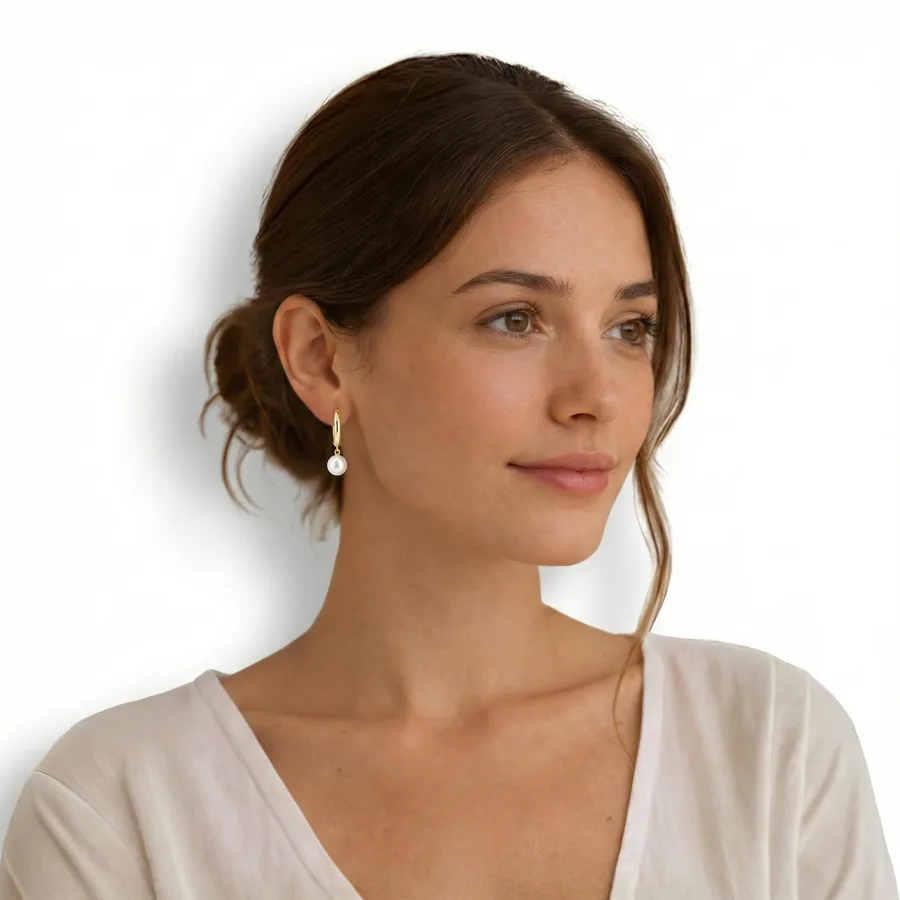 ✨חישוק עדין (14 מ״מ קוטר) מזהב עם פנינה קלאסית למראה נקי ואלגנטי.