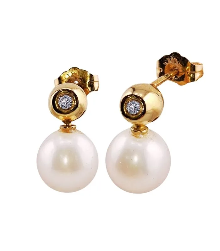 עגילי יהלום קלאסיים מזהב בשילוב פנינה– יוקרה עדינה