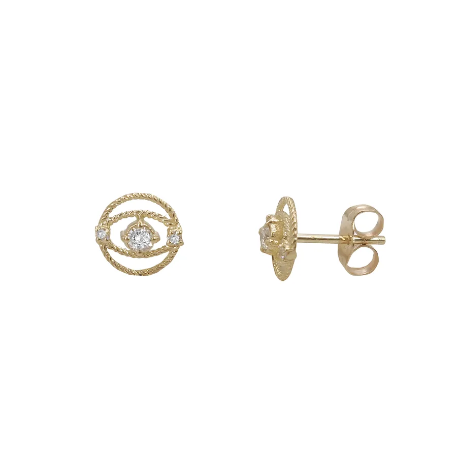 ✨ עגילים צמודים עדינים עם אלמנט עגול משובץ יהלומי מעבדה (סה״כ 0.13 קראט)