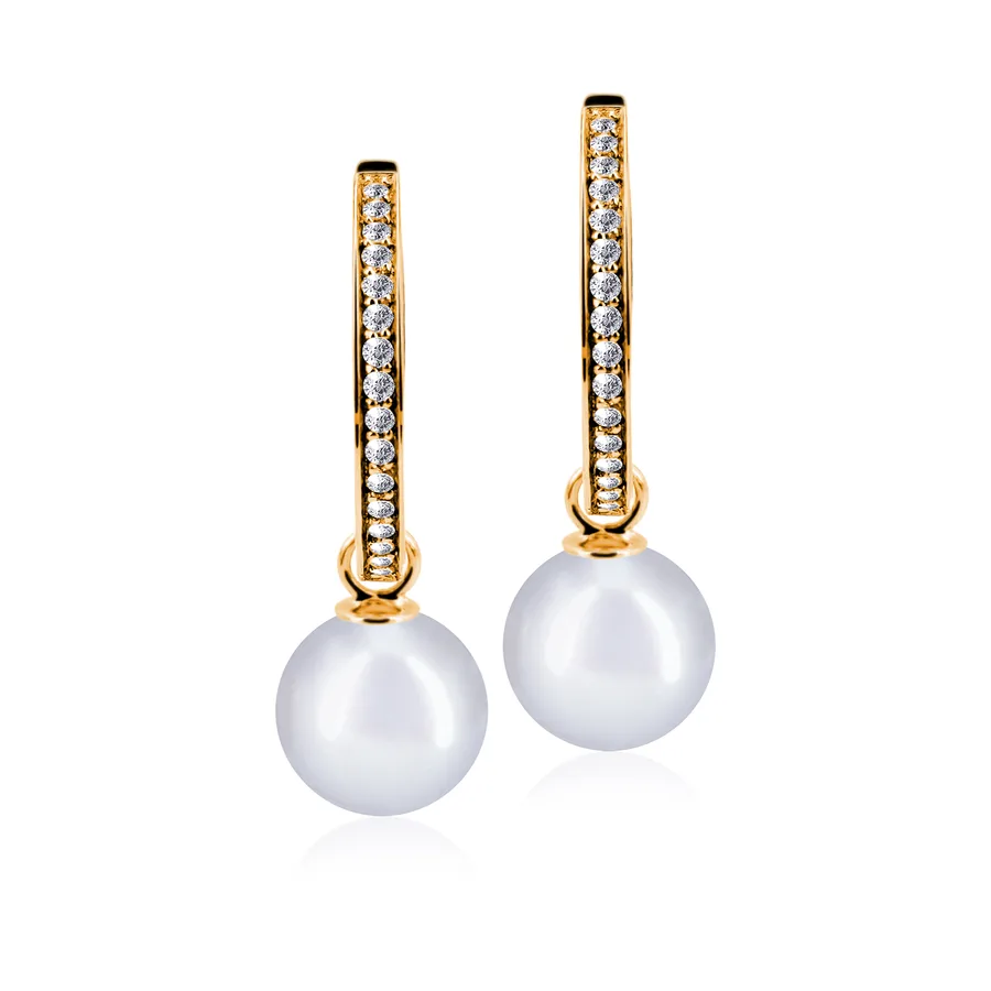 עגילי חישוק זהב עם יהלומים ופנינים – שילוב מושלם של קלאסיקה, ניצוץ ועדינות