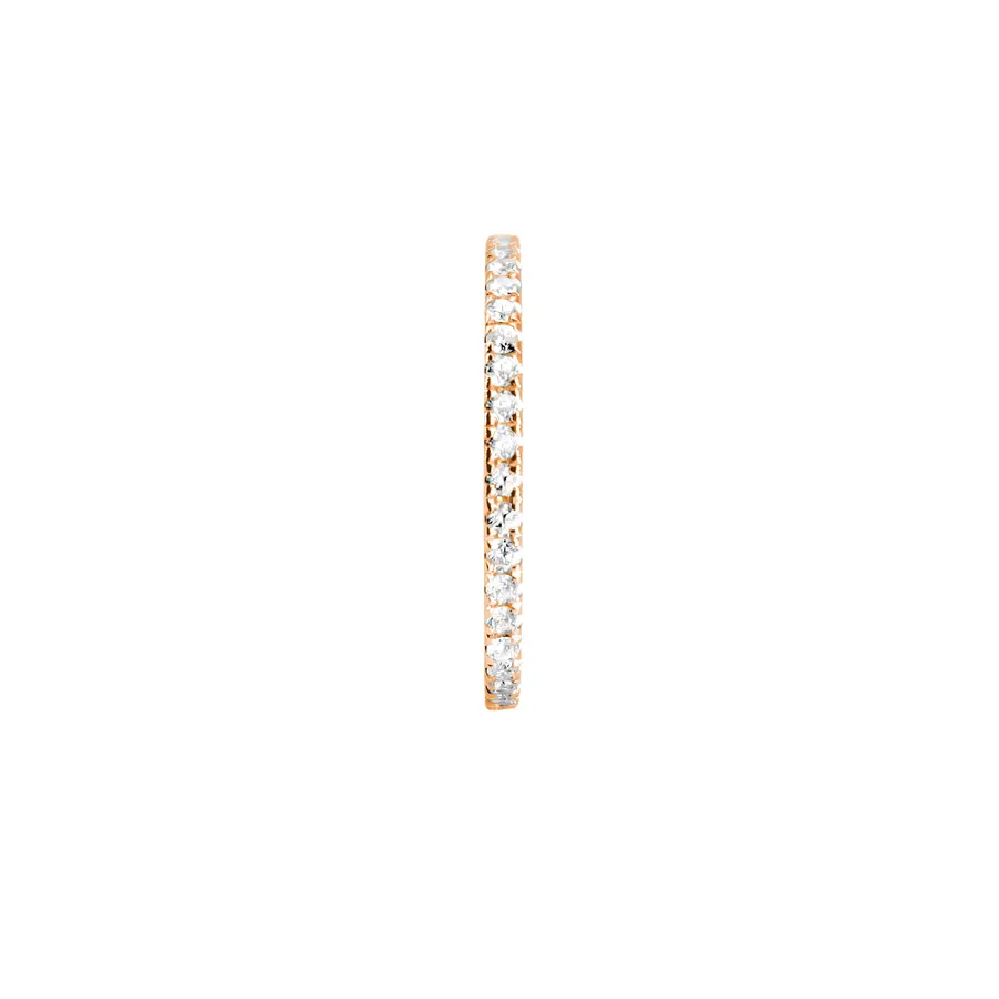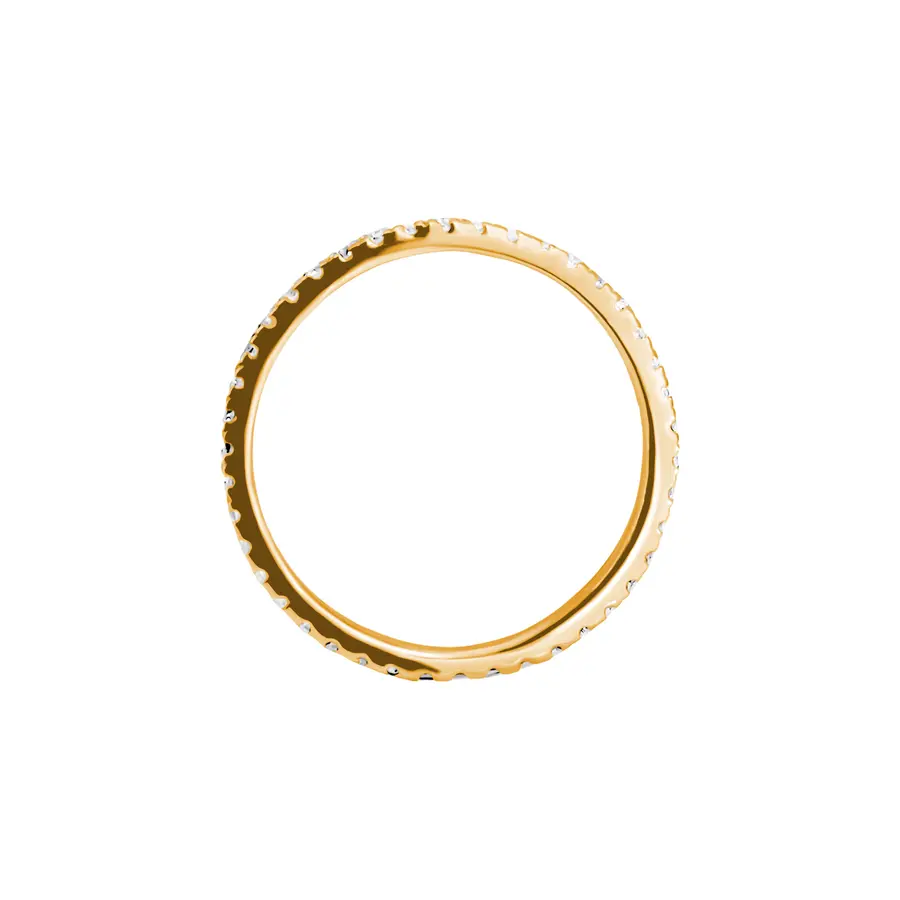 טבעת אלגנטית בעיצוב עגול מלא, משובצת 42 יהלומים (0.42 קארט) לכל אורכה ללא הפסקה. השיבוץ הרציף יוצר ברק מושלם מכל כיוון, כזה שמאיר את האצבע בתנועה עדינה בכל רגע.