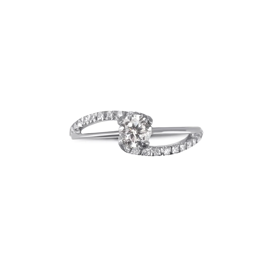 טבעת Marylin, מעוצבת ומודרנית, עם זרקון מרכזי וזרקונים קטנים בתנועה גלית