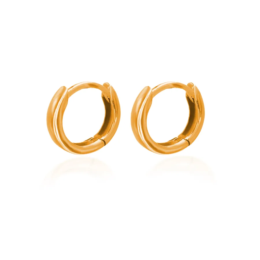 עגילי זהב חישוק/תלויים בקוטר 11 מ״מ, בעיצוב מעט רחב שמדגיש את הנוכחות מבלי לאבד את האלגנטיות.