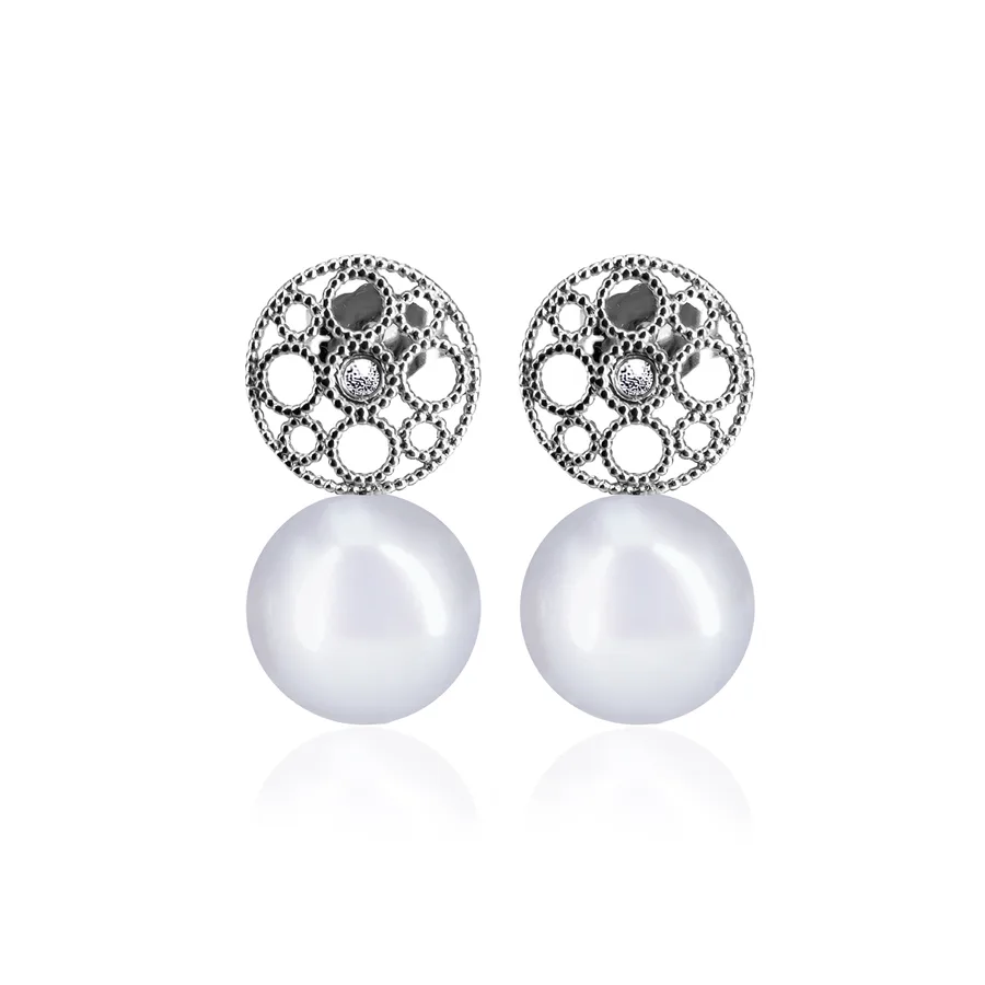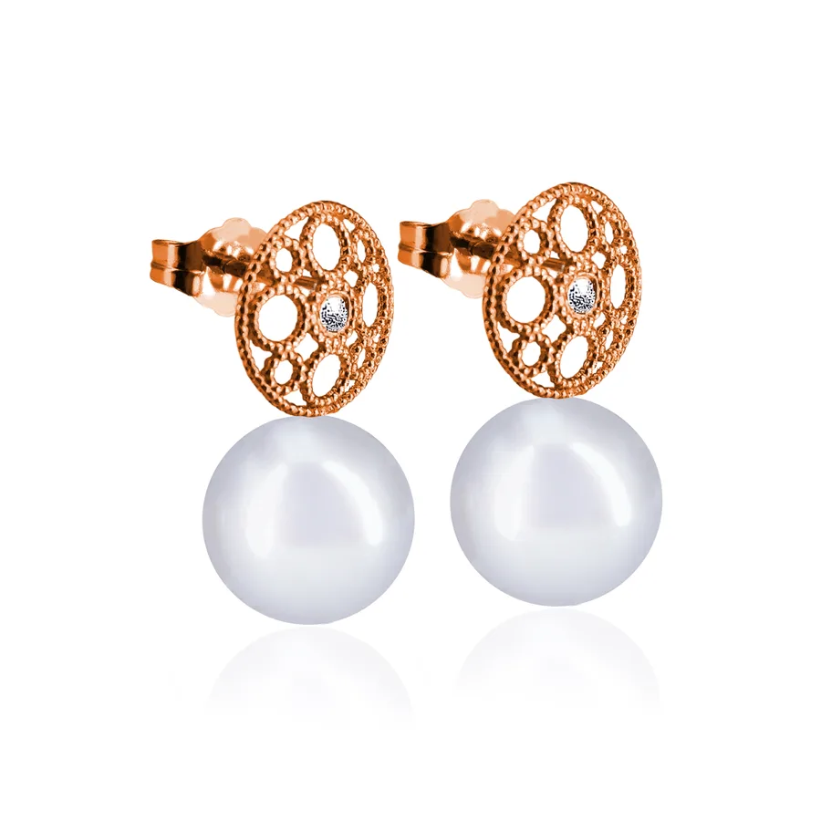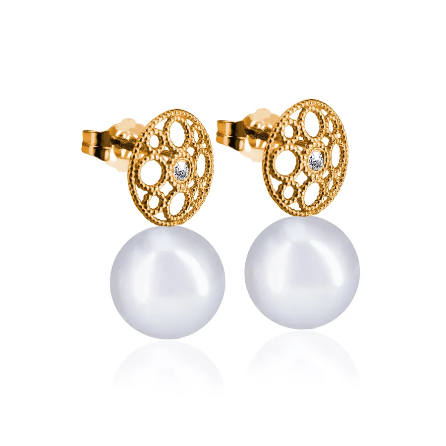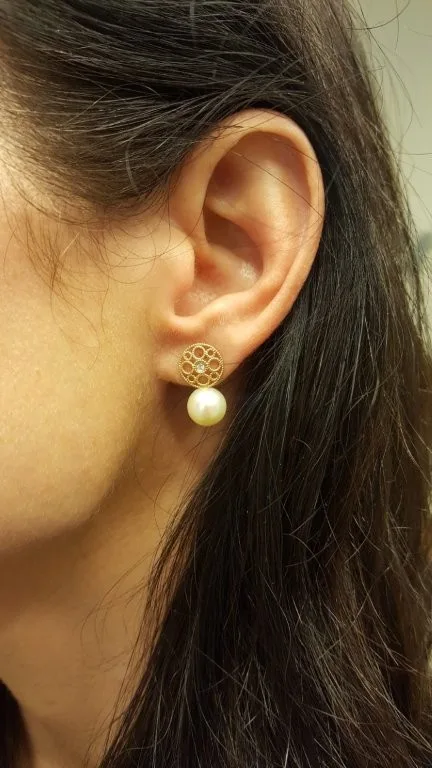 עגילי זהב יהלומים פנינים - Katya