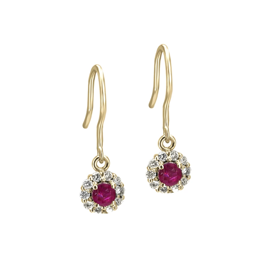 עגילי זהב תלויים עם 0.40 קראט יהלומים SI, G-H ורובי 0.64 בורמזי 0.64 קראט