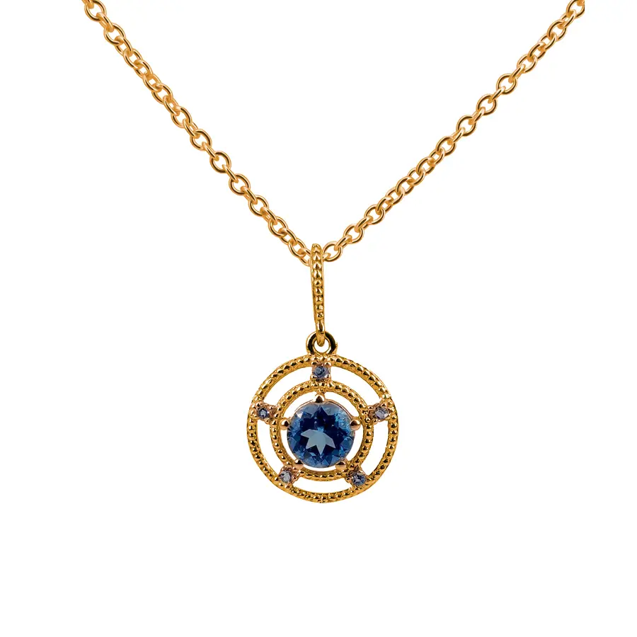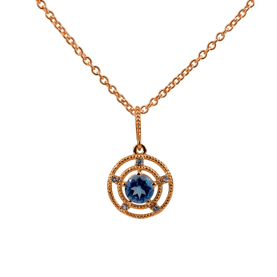 תליון בקוטר 10 מ"מ משובץ אבן מרכזית ו-5 אבנים קטנות בצבע כחול עמוק, מעוצב בהשראת סמלים של הובלה פנימית וכיוון מדויק — כמו כוכב שמאיר דרך בלילה או הגה שמוביל במסע על פני הים. הצבע העמוק מפוזר סביב המרכז יוצר תחושה של ביטחון, ייחודיות והרמונית, כזו שמזכירה קצב טבעי ומרגיע.