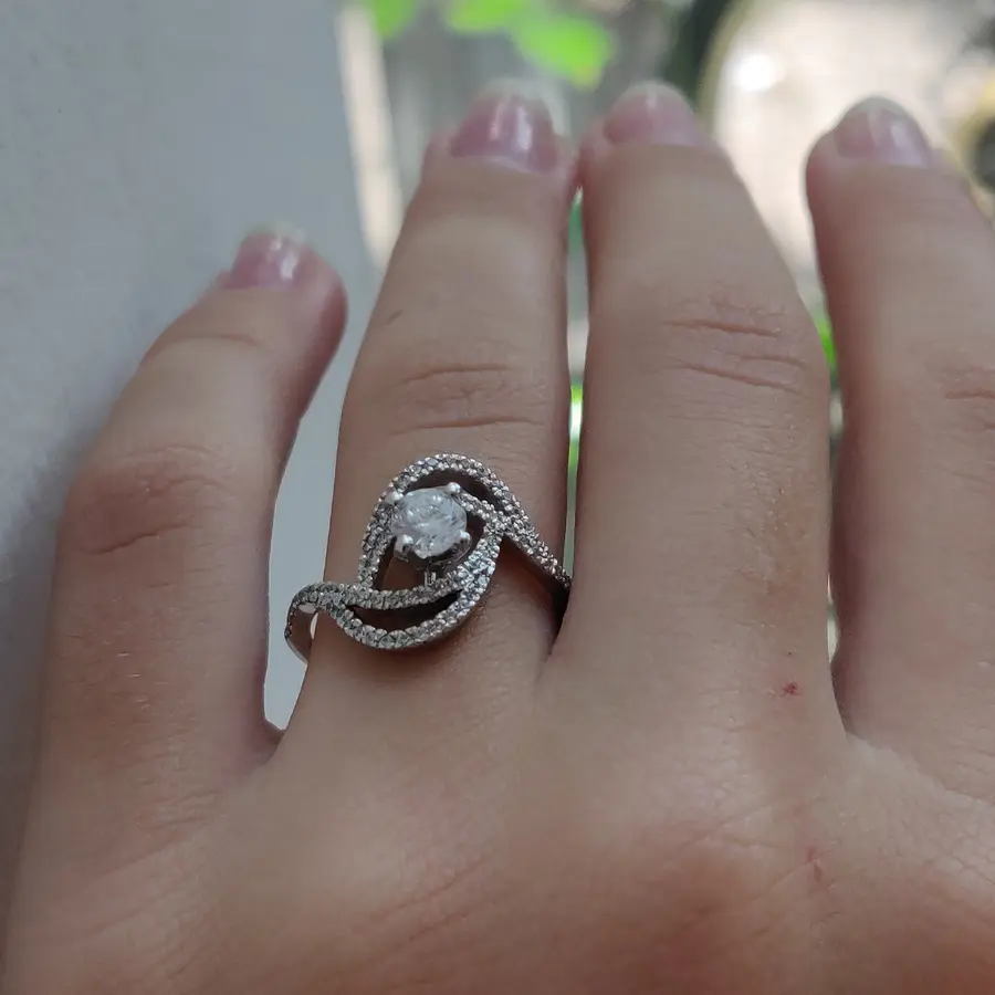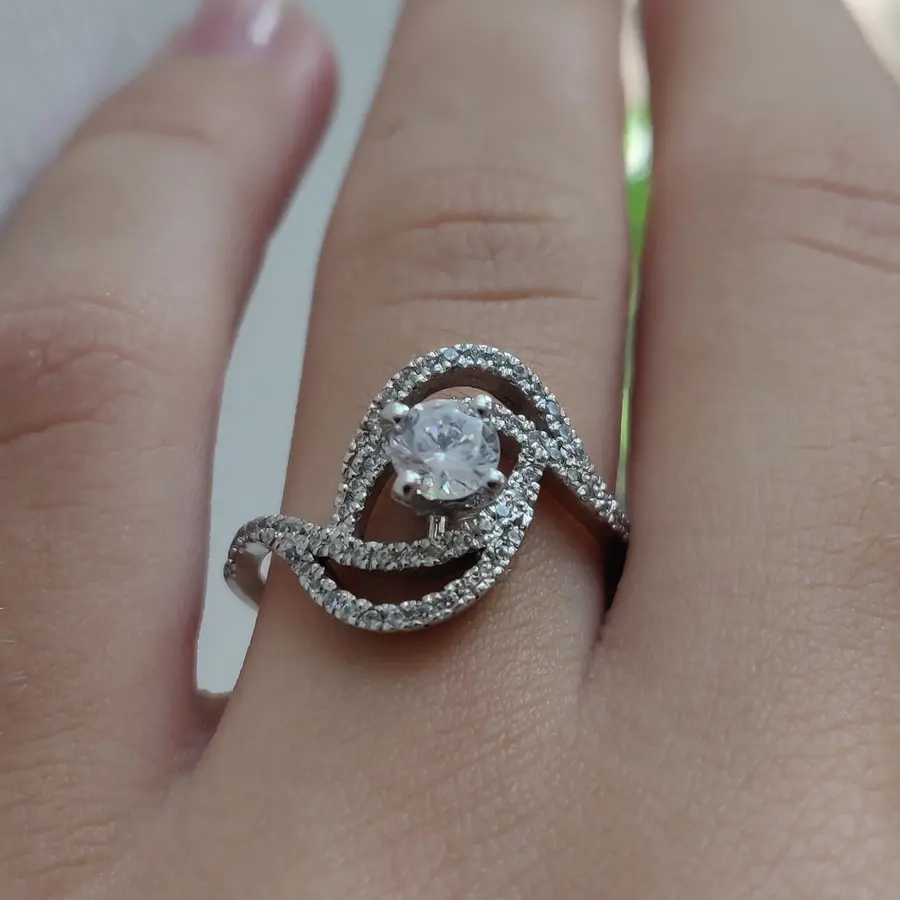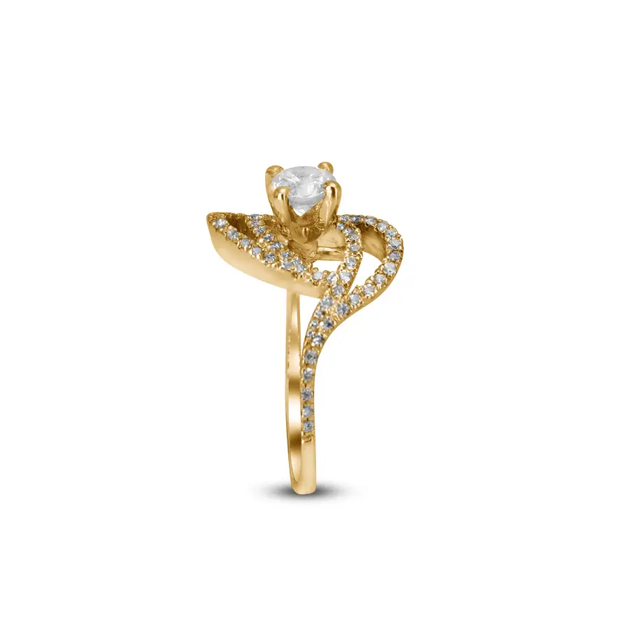 טבעת מלכותית עם יהלום מרכזי גדול ו־64 יהלומים שעוטפים אותו כמו פרח יוקרתי. סה״כ 0.82 קראט של יהלומי מעבדה.