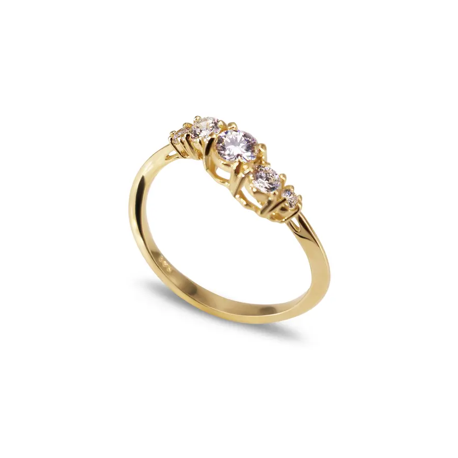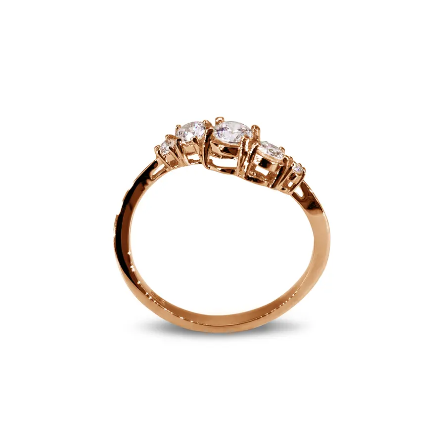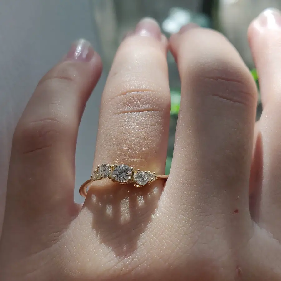 טבעת גל עדינה וקלאסית עם שלושה יהלומי מעבדה גדולים בסך של 0.66 קראט ועיטורים שיוצרים משחק אור מיוחד.