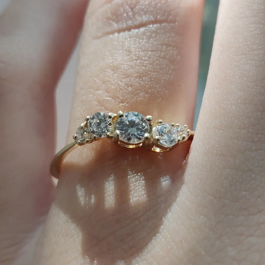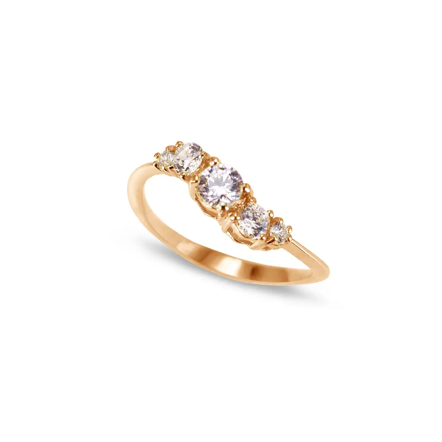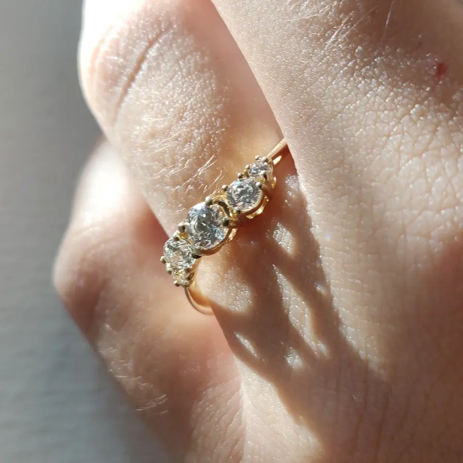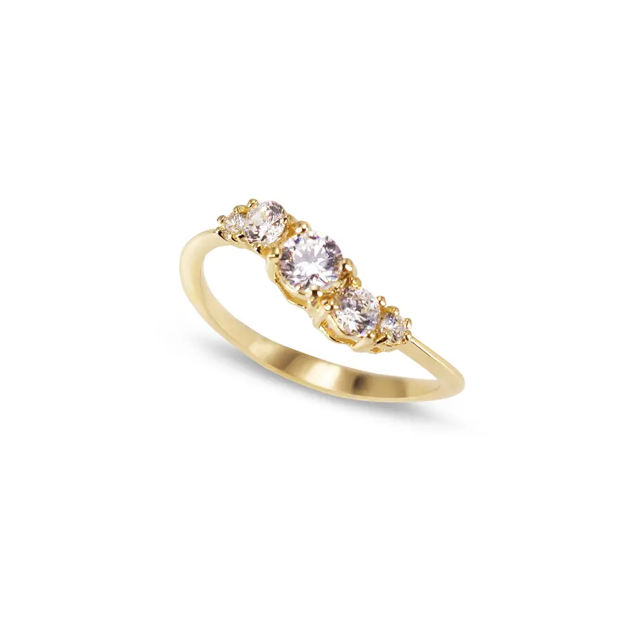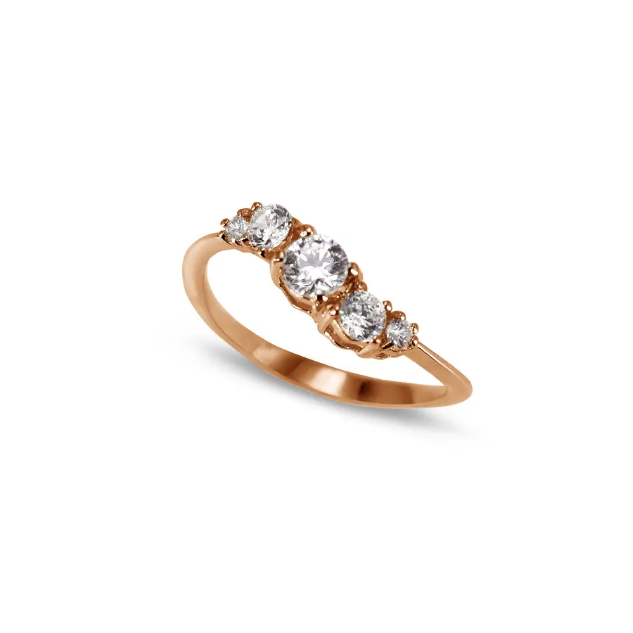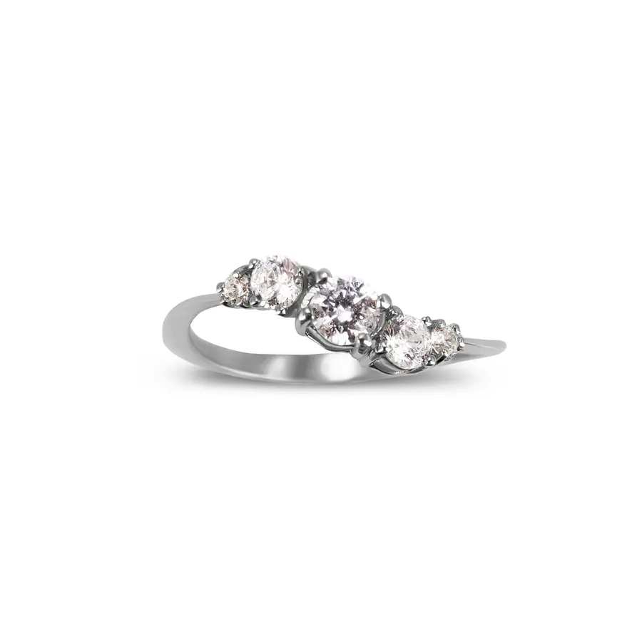 Elizabeth משלבת שלושה יהלומים משמעותיים בשני גדלים — בעיצוב גלי שנותן עומק ותנועה.