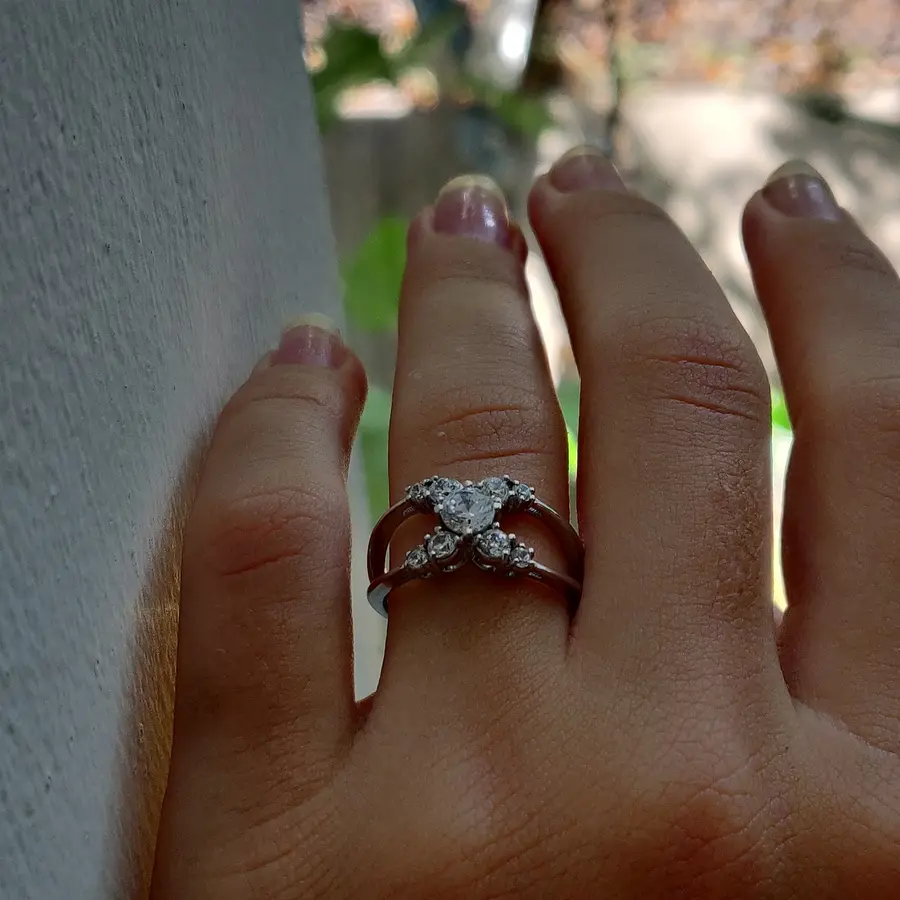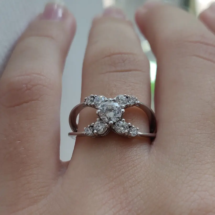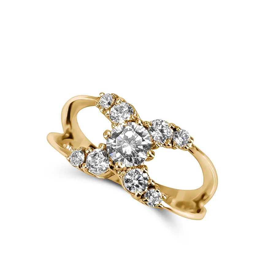 Adria היא טבעת שלא דומה לשום דבר אחר: עיצוב מיוחד, יהלום מרכזי מרשים, ולצידו ארבעה יהלומים בינוניים וארבעה קטנים.