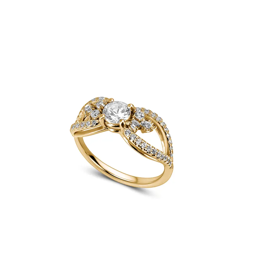 טבעת Adria — מלכותית, ייחודית, עם יהלום מרכזי ו־8 יהלומים נוספים בגדלים שונים. סה"כ 0.80 קראט של יהלומי מעבדה.