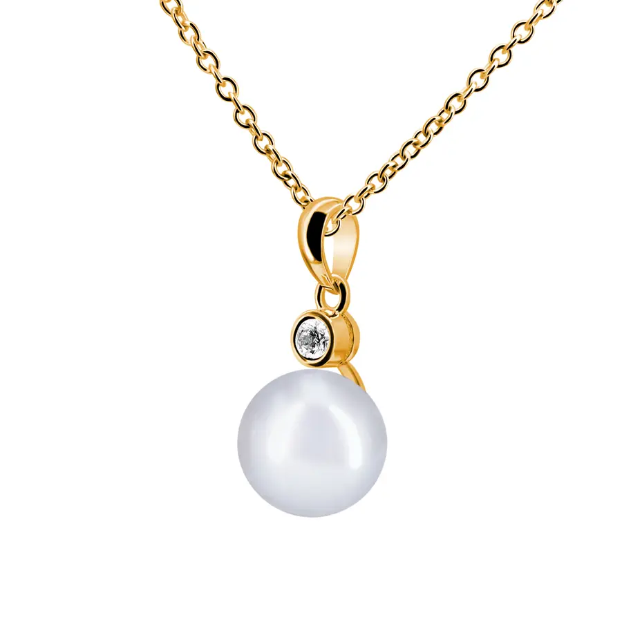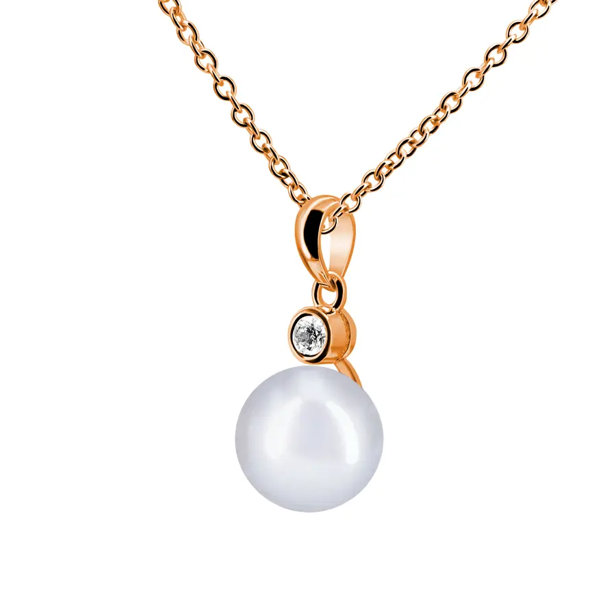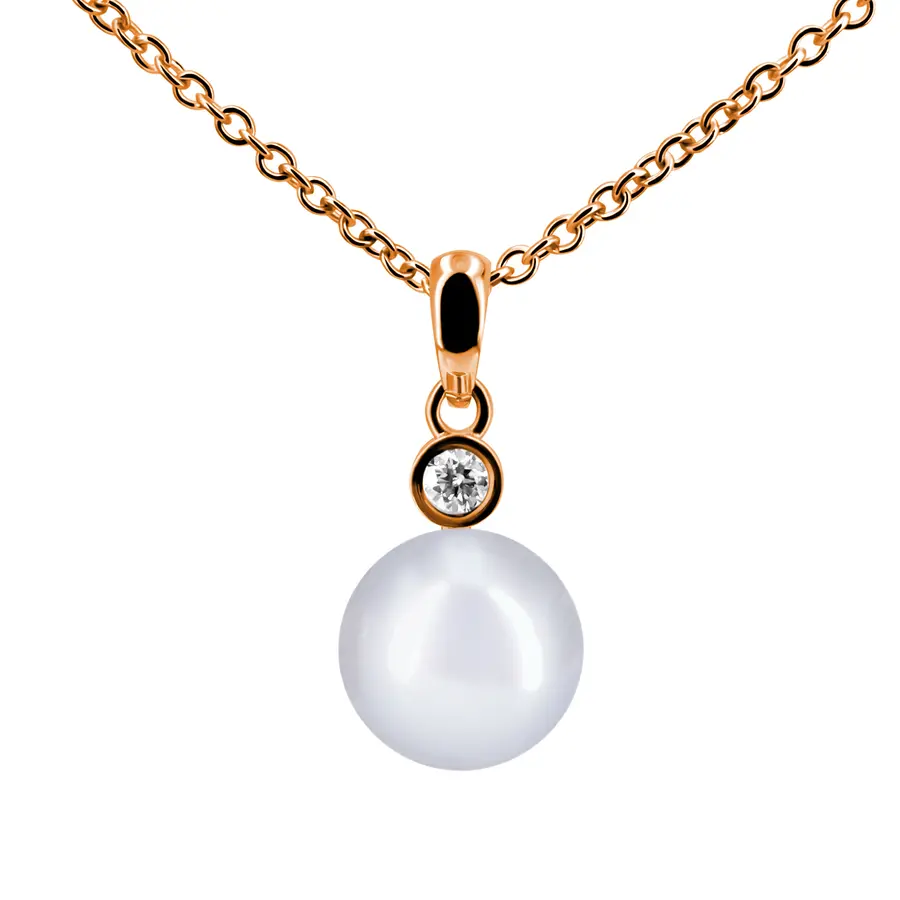 ✨ שרשרת עדינה עם יהלום מעבדה 0.07 קראט במרכז ופנינה אלגנטית שתלויה מתחתיו.