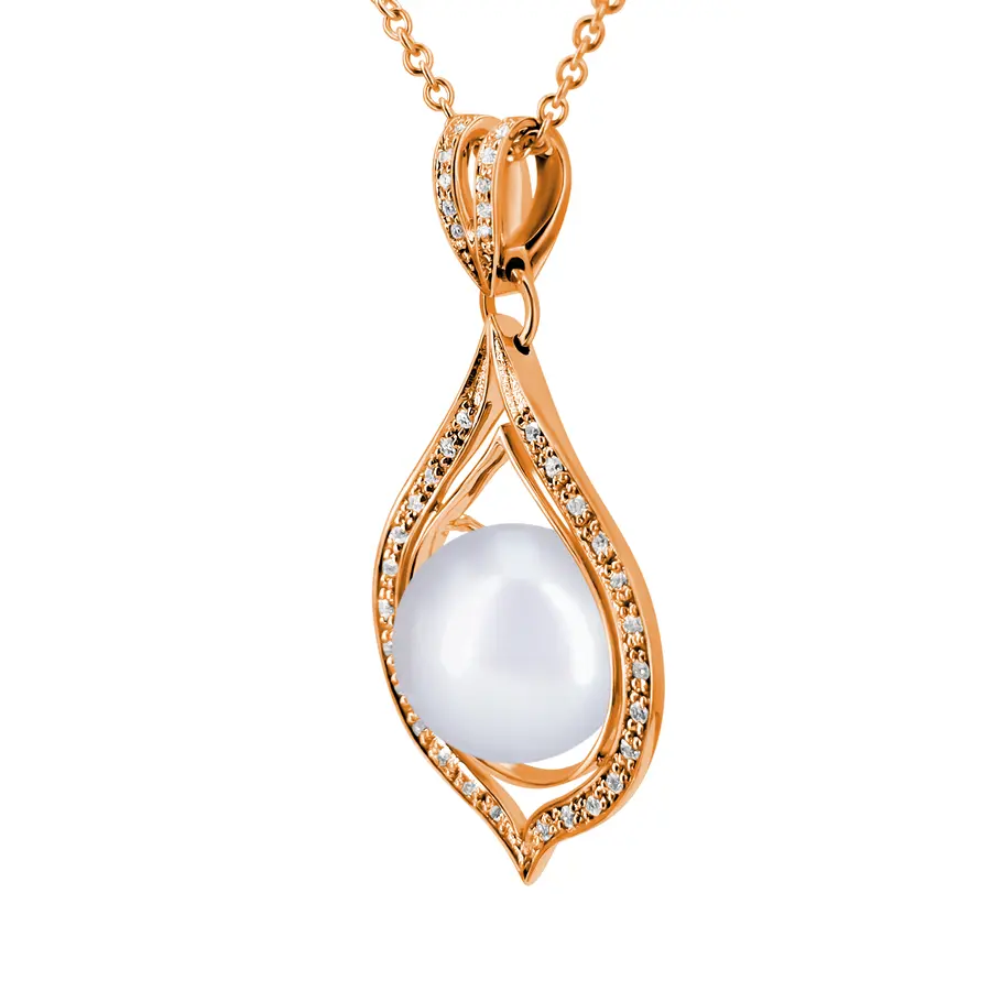✨ פנינה טבעית השוכנת בתוך מעטפת עלה יוקרתית משובץ 36 יהלומי מעבדה בגדלים שונים (סה״כ 0.18 קראט).