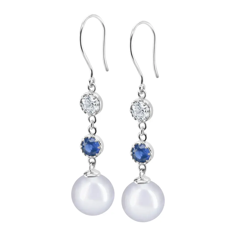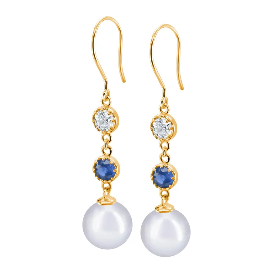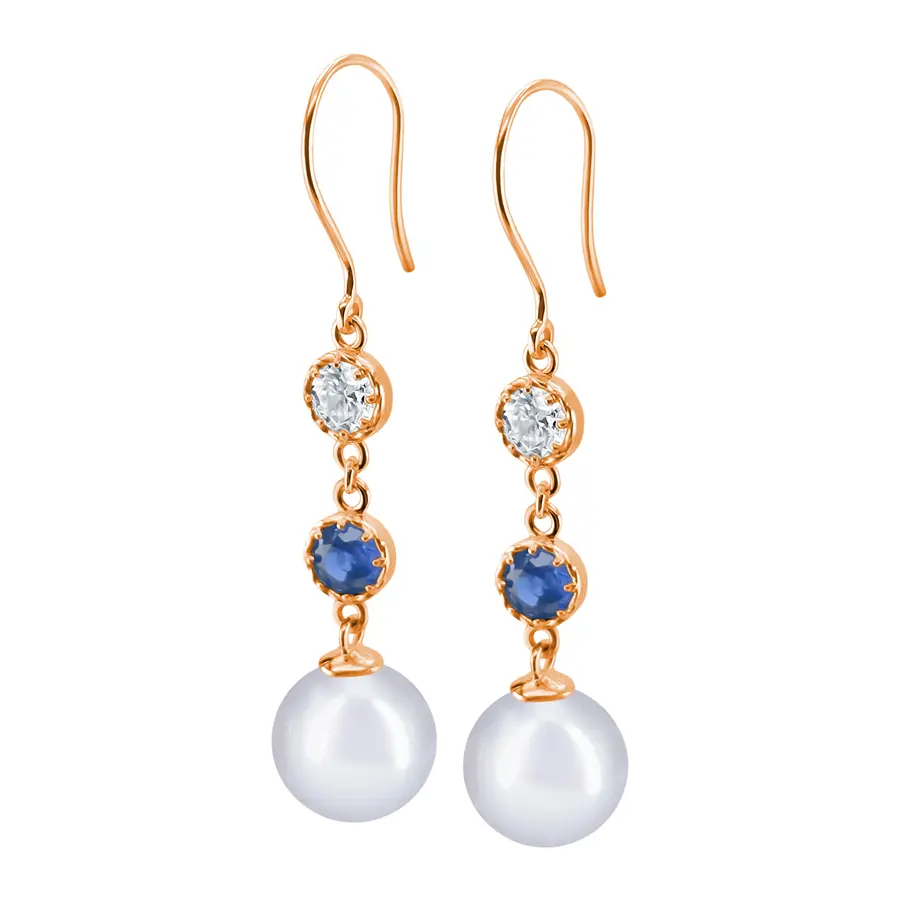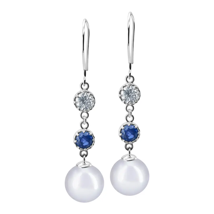 Annika Sapphire משלבים יהלומים עם אבני ספיר כחולות מבריקות שמעניקות נצנוץ עמוק ומסתורי, ומתחתיהן פנינה טבעית בעלת ברק רך. תכשיט מרשים, יוקרתי ואלגנטי — מושלם לאירועים. אורך כולל של 41 מ״מ.