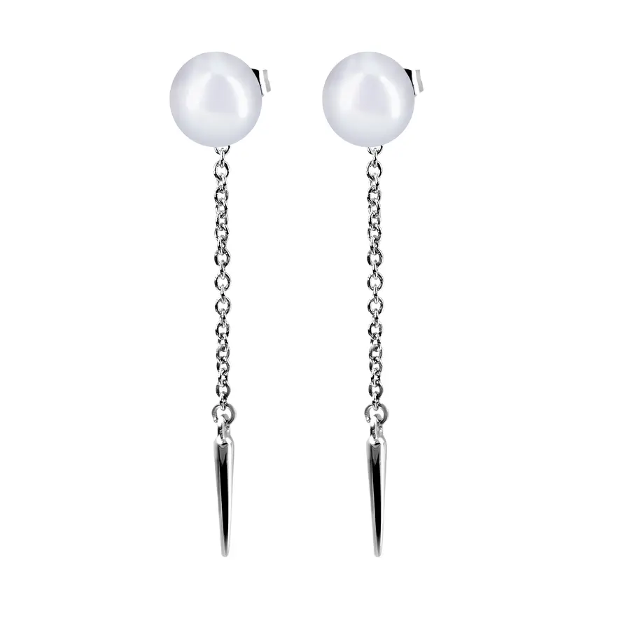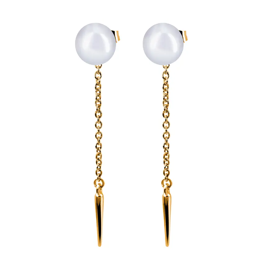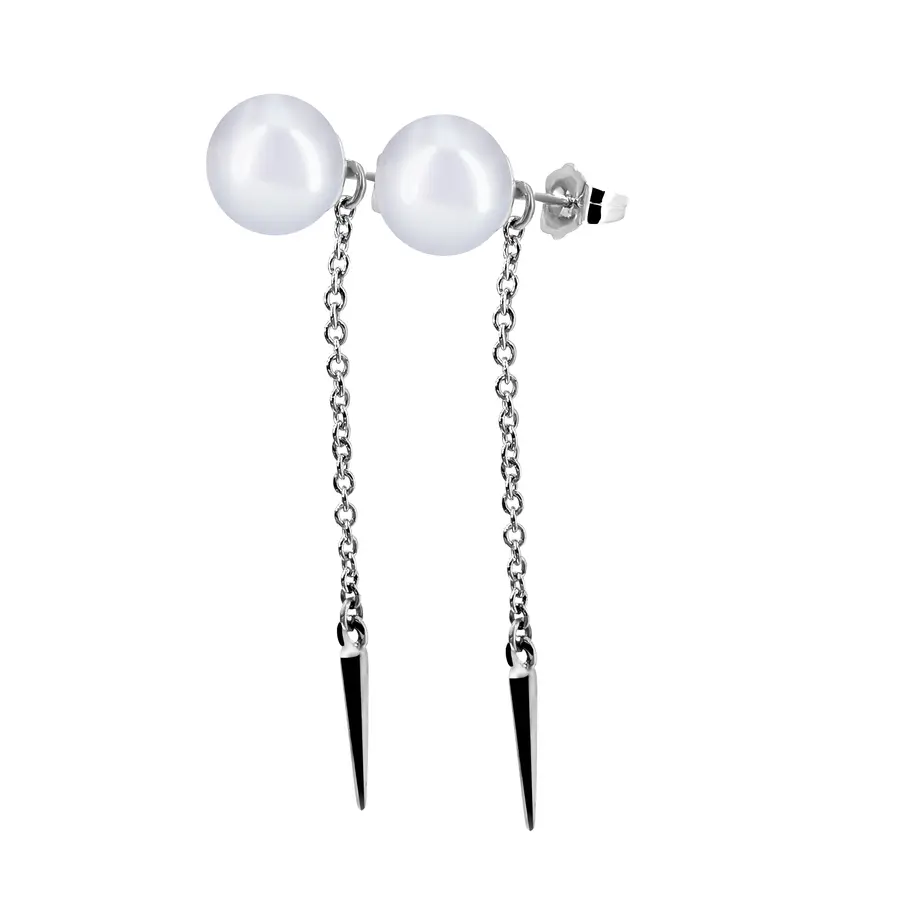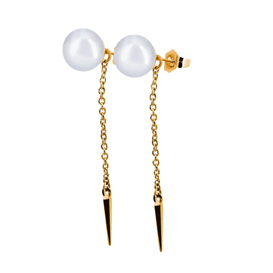 עגיל קלאסי המשולב מפנינה צמודה על האוזן ושרשרת עדינה המשתלשלת למטה, שבקצה שלה מוט מעודן המוסיף קווים ארוכים ואלגנטיים. עיצוב שמעניק מראה נקי, מודרני ומחמיא לצוואר ולפנים.