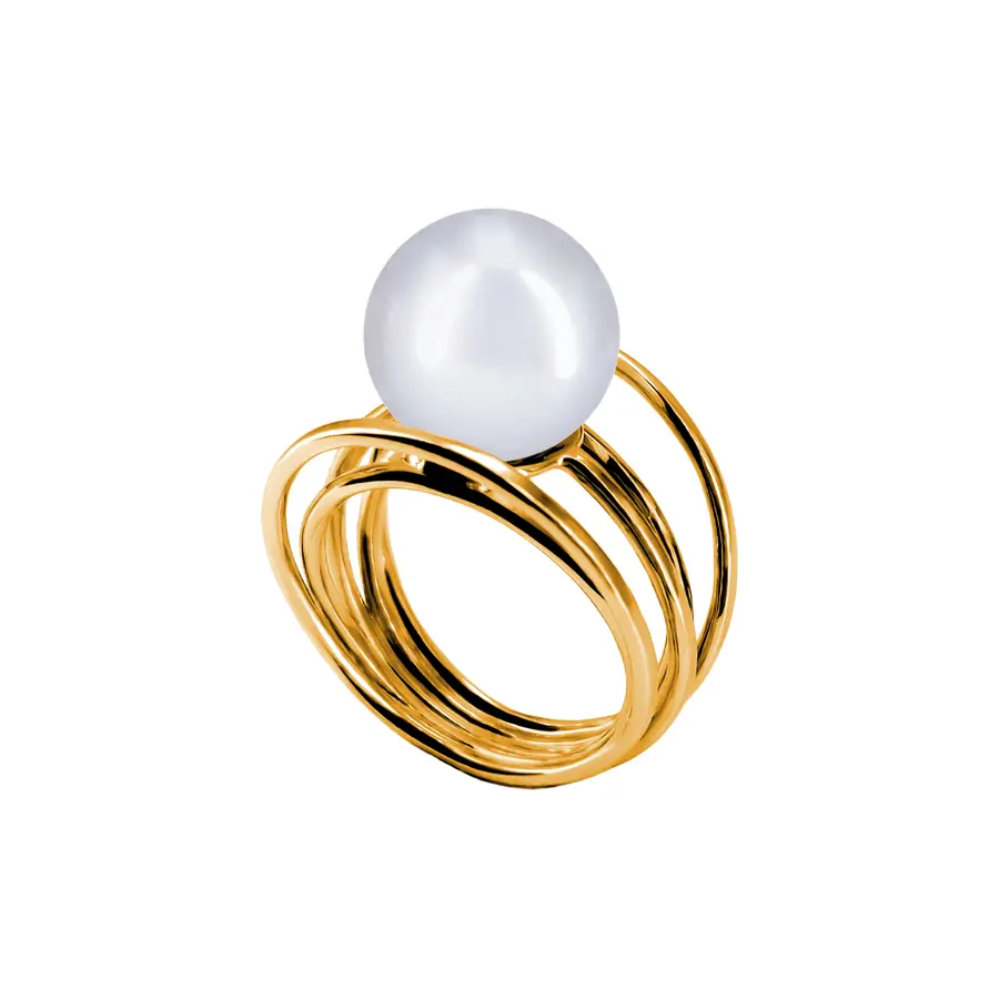 Tess היא טבעת שעושה הצהרה. עיגולי זהב שנושאים פנינה גדולה ומבריקה — שילוב שמדגיש עוצמה לצד נשיות. טבעת מושלמת למי שאוהבת תכשיטים בעלי נוכחות חזקה אך אלגנטית.