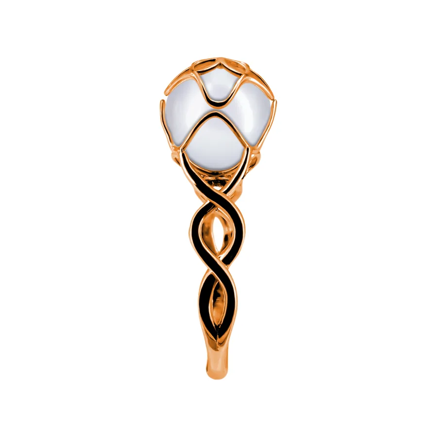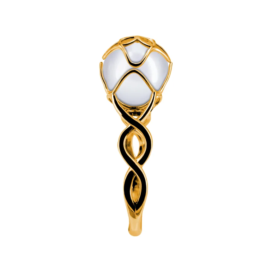 Selina משלבת פנינה רכה בתוך מסגרת מוזהבת בעלת דוגמת תחרה מרהיבה. התוצאה היא טבעת רומנטית, אומנותית ומלאת אופי — יצירת תכשיט ייחודית שמבליטה את הנשיות בעדינות.