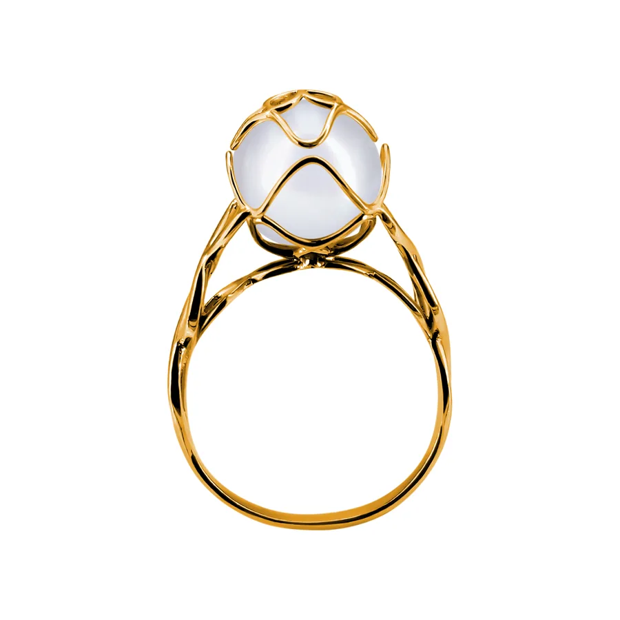 💍 טבעת פנינה בעיצוב תחרה מוזהבת.