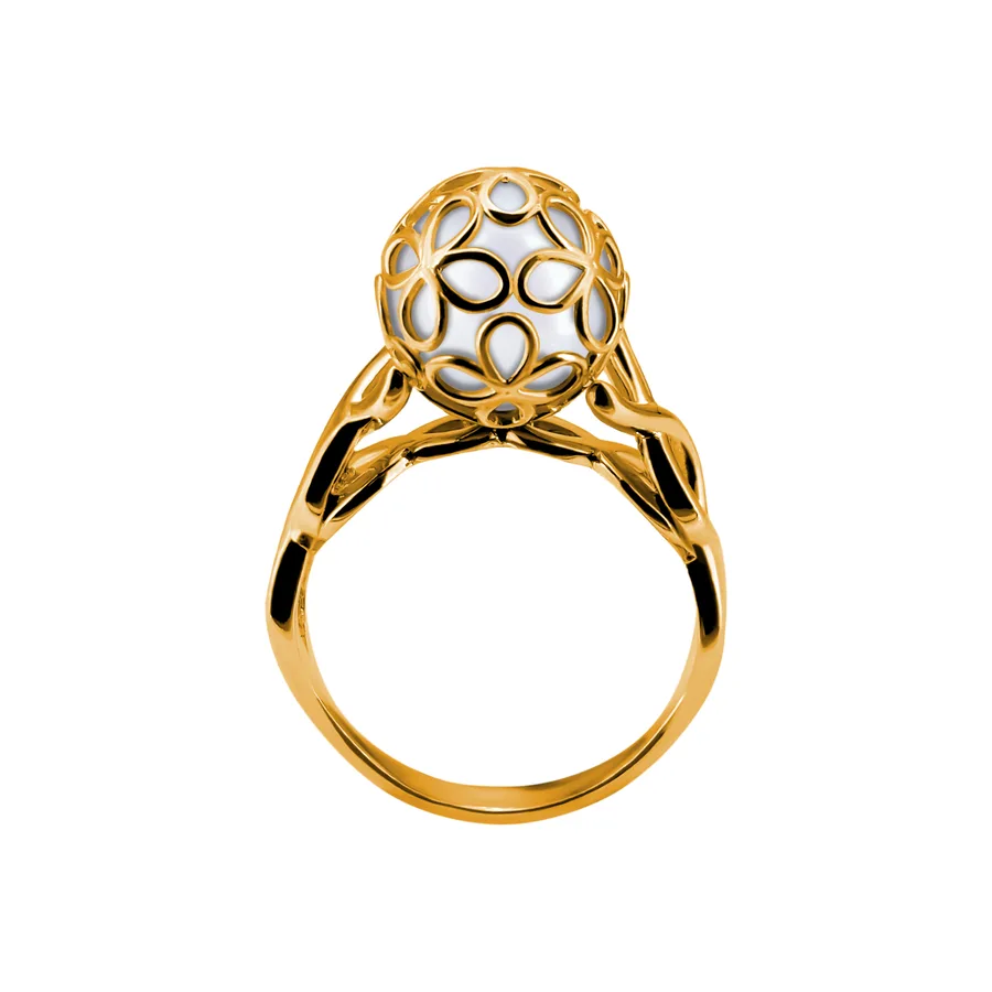 💍 טבעת פנינה בעיצוב פרחוני מוזהב.