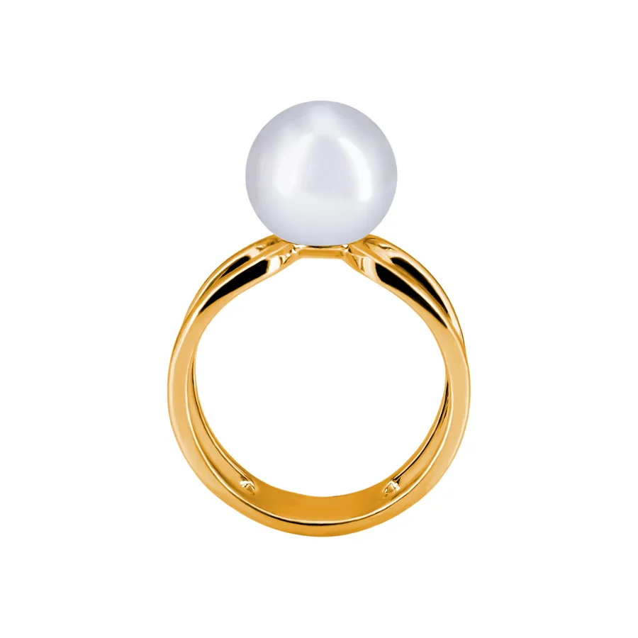 Lois מציגה עיצוב מודרני: שתי רצועות זהב יוצרות מבנה פתוח ומרשים, שמעליו פנינה עגולה. התוצאה — טבעת עדכנית, נשית ובעלת נוכחות מרשימה אך רכה.